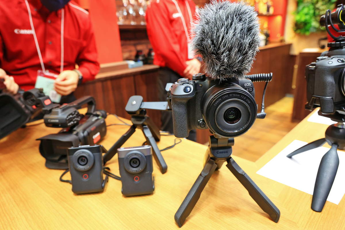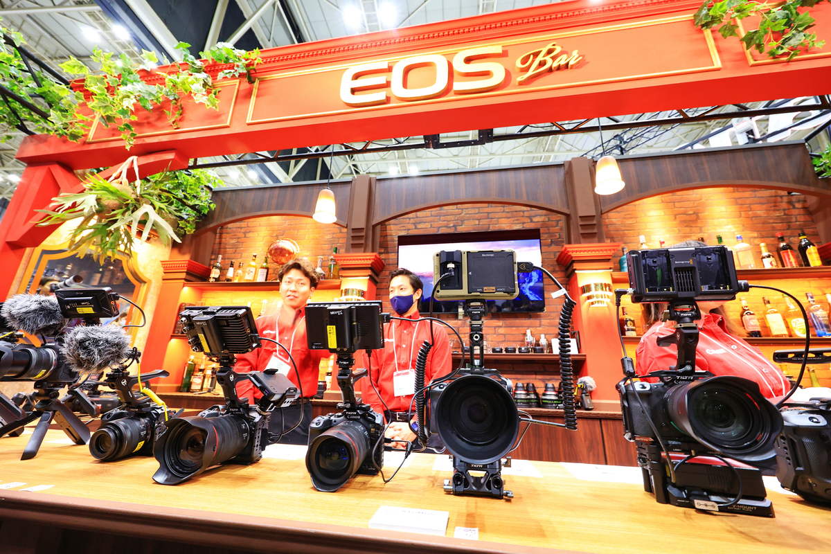 不僅相當特殊的裸視3D攝影科技之外,針對影片拍攝之設備,Canon以一支支鏡頭為意念打造而成的Canon Bar展區,一次全覽展區內不僅RF、EF鏡頭群,以及能對著臉部進行自動移動追焦拍攝的PowerShot PICK、適合Vlog一手掌握拍攝的PowerShot V10之外,同時Canon EOS R System也能盡情使用電影級的Canon CN系列鏡頭,讓拍攝影片陣線更為堅強全面。