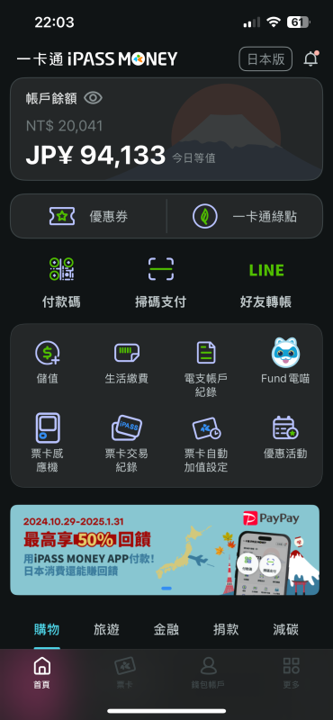 下載iPASS Money APP,整合一卡通綠點,開啟旅日PayPay享樂優惠行!