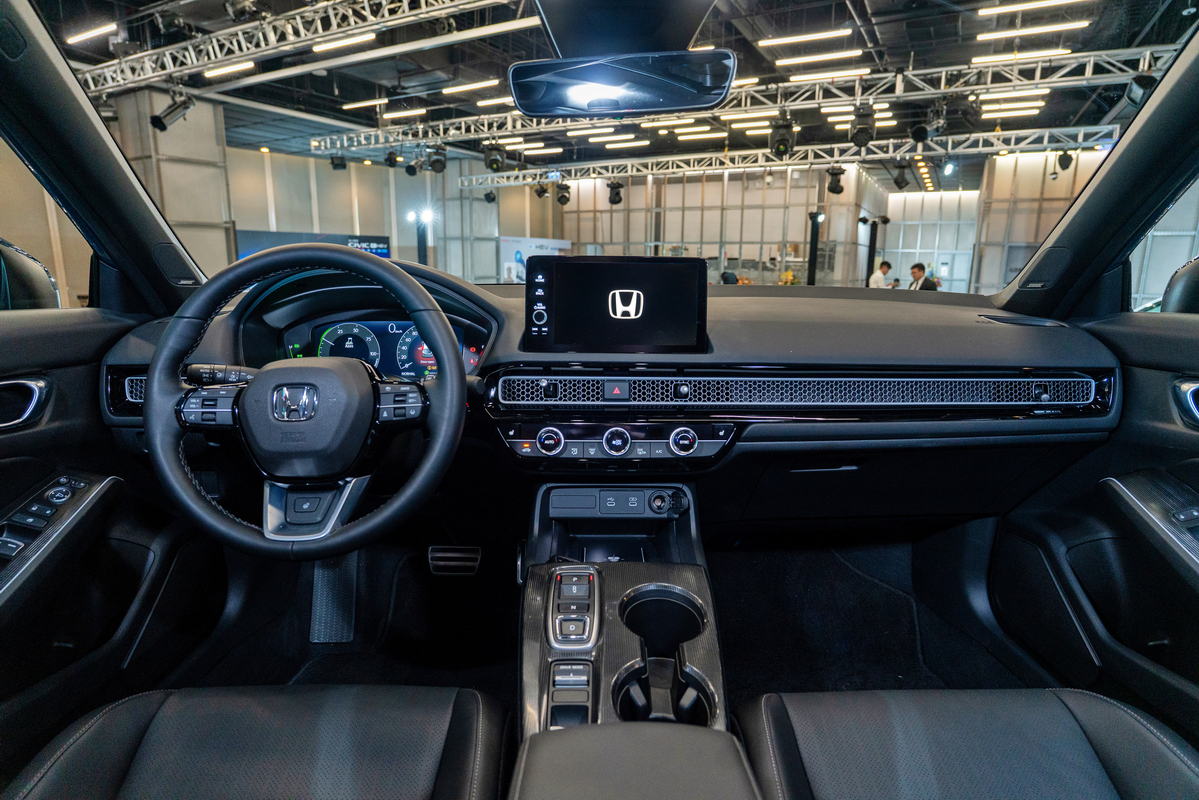 All-new CIVIC e:HEV延續以人為本「MM思想-車室空間最大化、機械空間最小化」設計理念,加長加寬乘坐空間與行李廂容積,締造極致舒適駕乘體驗。內裝以日製歐規高科技質感為訴求,蜂巢狀隱藏式冷氣出風口貫穿整個儀表控台,呼應外觀水箱護罩,另搭載10.2吋數位液晶儀表板、9吋觸控懸浮式主機、Apple CarPlay/Android Auto等配備;此外配有Walk-Away Lock離開立刻上鎖功能、跑車化設計上掀外滑式全景式電動天窗、駕駛座8向、乘客座4向電動座椅調整等舒適科技配備,成就頂級駕乘移動生活。