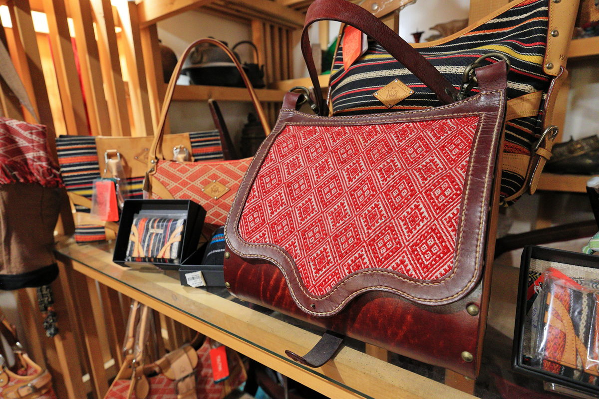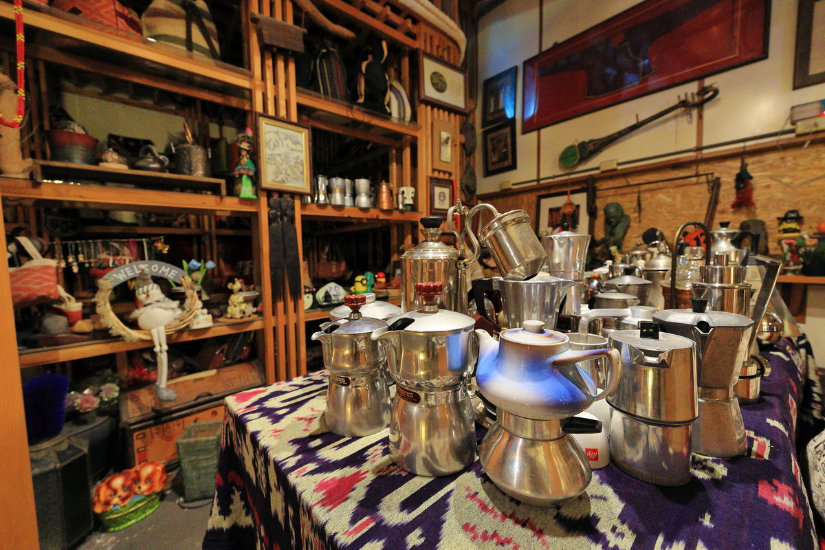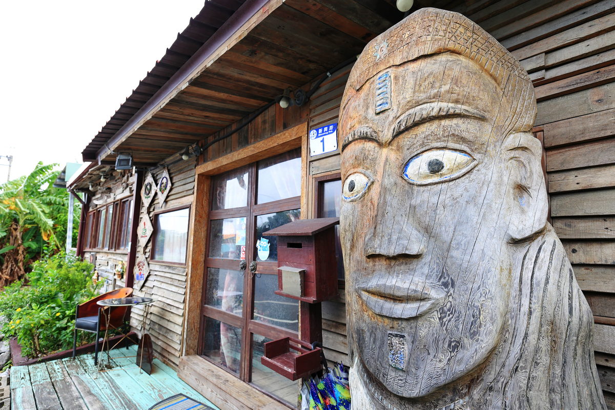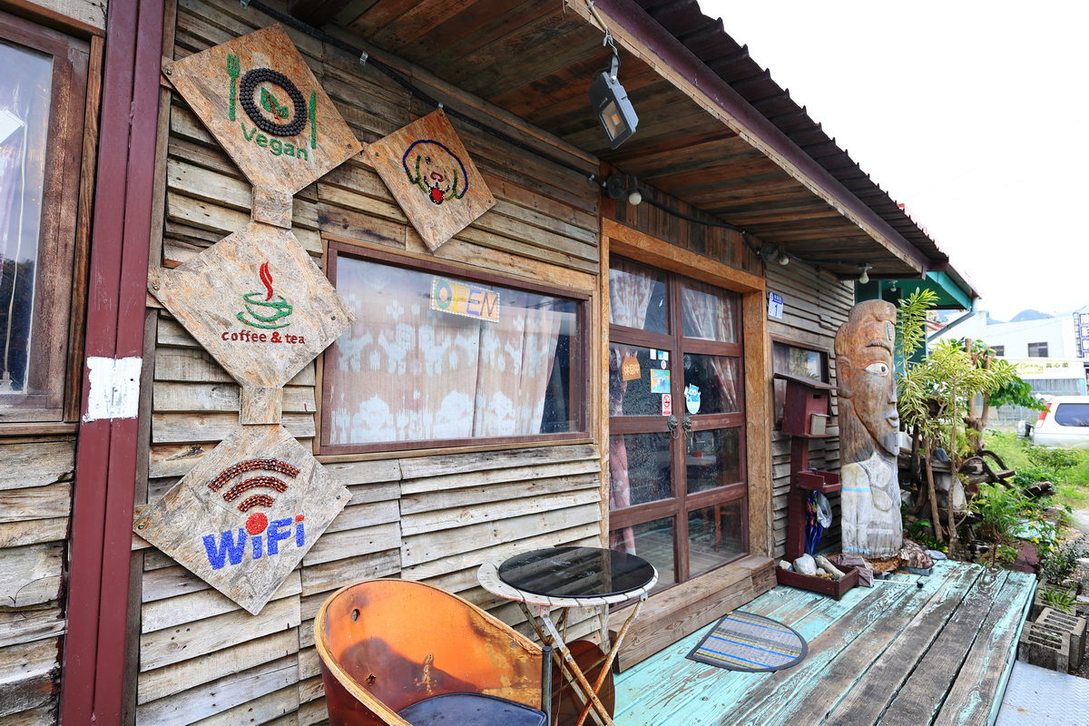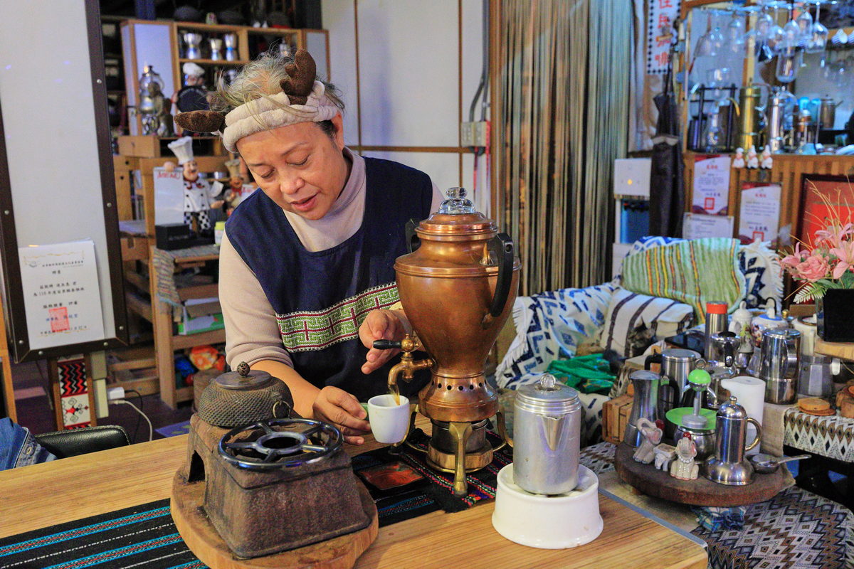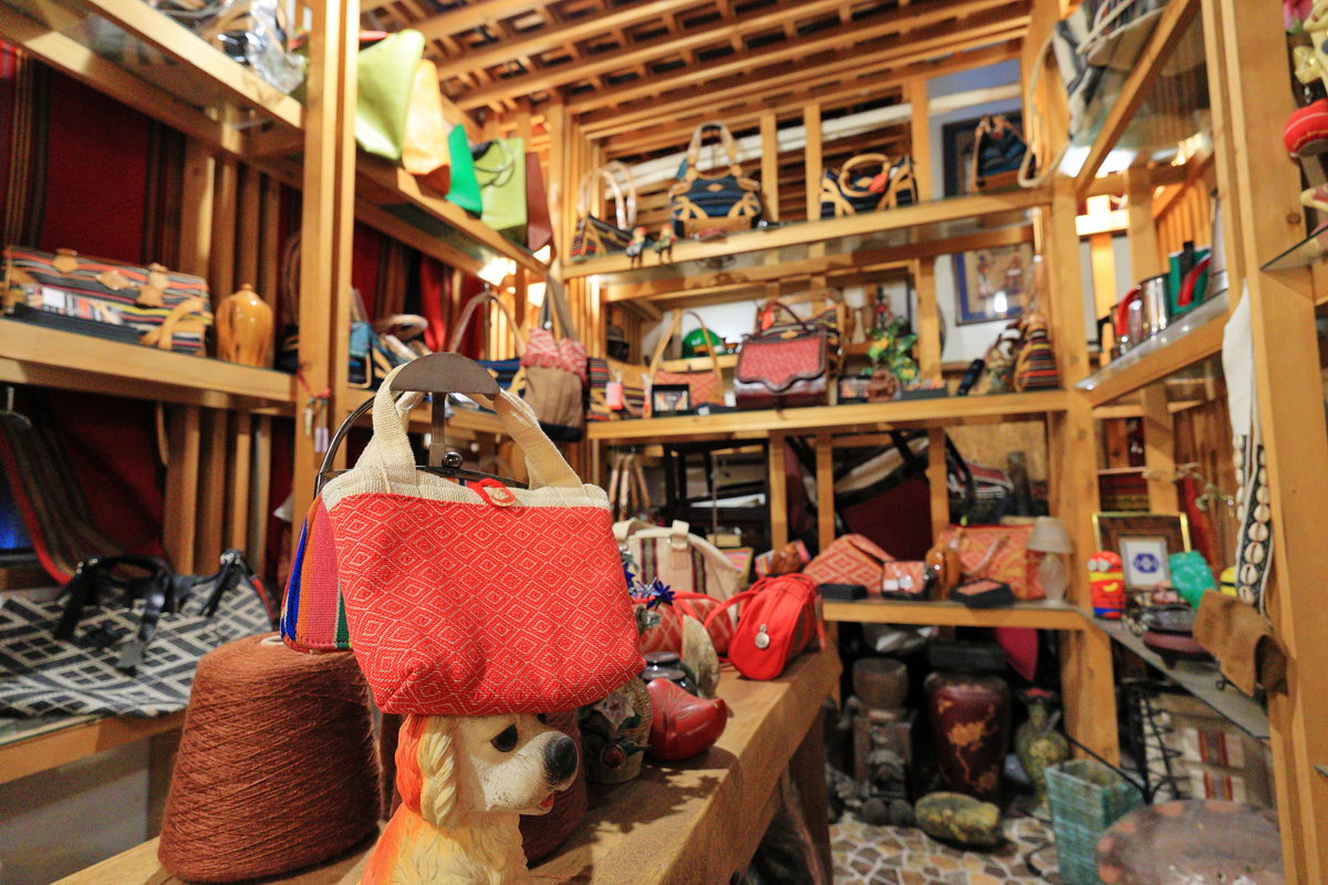 本次旅行搭乘火車抵達花蓮的首站,我們來到新城鄉來場有趣的漫遊,而這漫遊開端就從Yuli經營的【翼展商行X織娘之家】拜訪一趟吧。抵達這座落於台9線上的商行,映入眼簾的除了充滿簡樸的木造建築與鮮明的肖像木雕之外,牆上所展示店家供應的咖啡/茶、寵物友善以及素食餐點皆為自己手做的看板,不僅相當亮眼精緻,同時更增添可愛的氣息呢。走進店內,瞬間只能用WOW的讚嘆來形容,因為對比店外,店內像是宮崎駿動畫霍爾的移動城堡一樣,城堡內像是一座別有洞天的博物館,琳瑯滿目的柴燒陶器、茶壺、編織作品等陳設,皆為主人家Yuli自己設計手作的藝品,在這些陳設中最為瘋狂的是Yuli對於摩卡壺有著愛不釋手的狂熱,因此整個店內更有各式摩卡壺的收藏,以及歡迎懂得品味摩卡壺魅力的玩家們一同在此交流的熱情呢,而在讚嘆她的摩卡壺蒐藏之於,善於編織的Yuli與我們分享如何運用天然苧麻的原料,結合泰雅及太魯閣族手工織布的文化內涵,將其鮮豔的各式圖騰編織而成,進而與經過防潑水處理的牛皮一同加工而製成獨具原住民特色,卻又像來自歐美充滿精品質感的在地手作織布皮包“YuliTaki”。