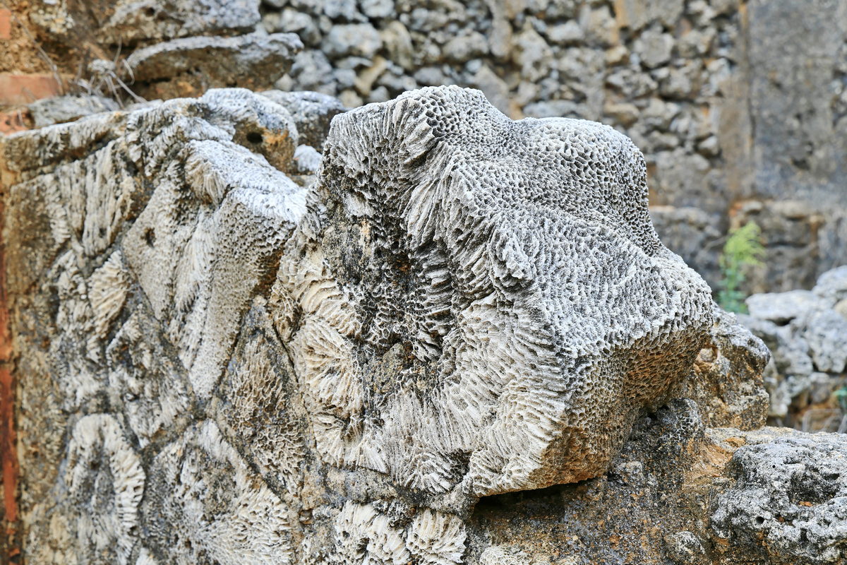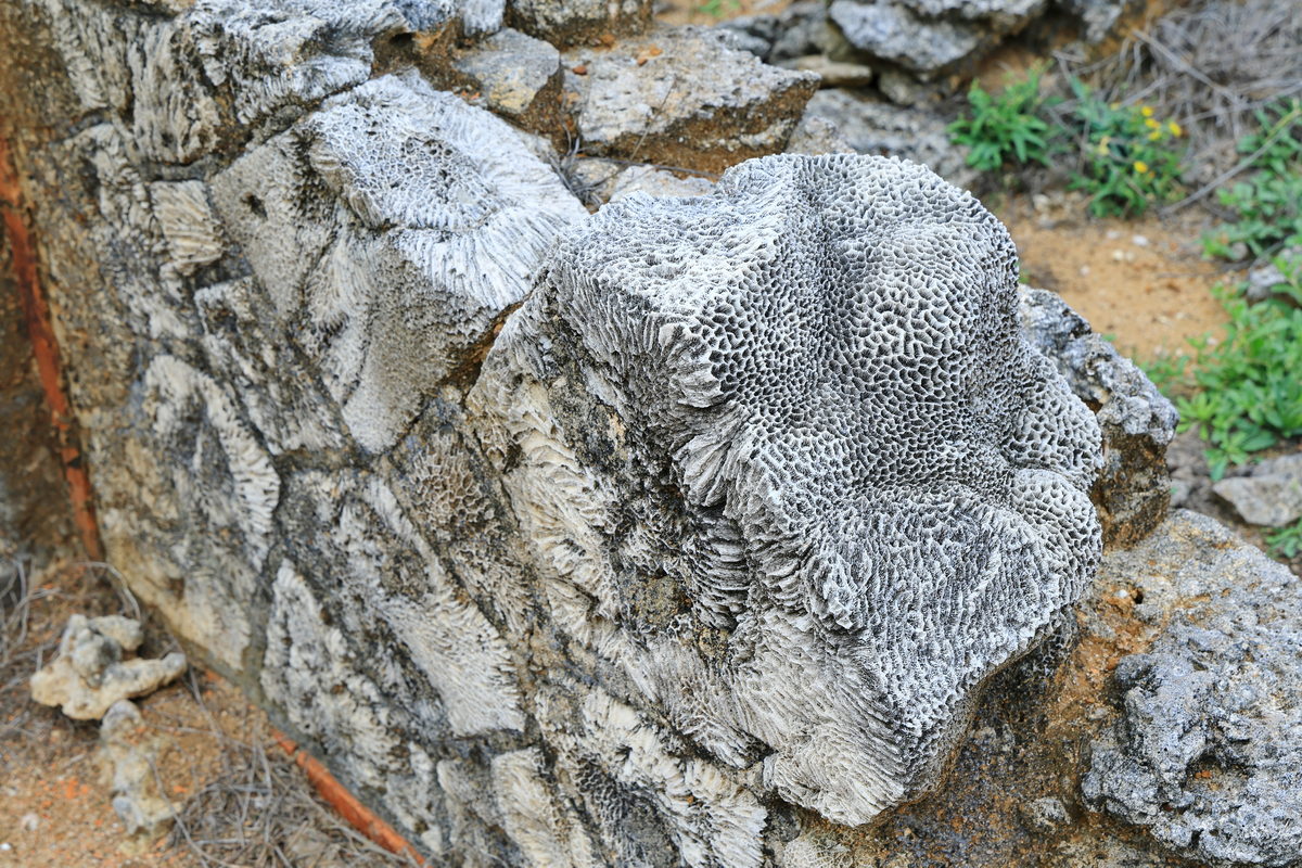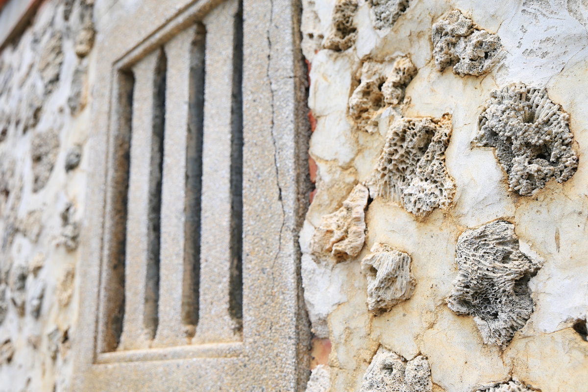 在澎湖旅行探訪坐落於各處的閩南式建築老宅時,是否會發現對比台灣、金門的閩南建築,澎湖老宅的牆面上多了些許特別的點綴呢?仔細在這些牆面上觀察一番,即可發現許許多多的珊瑚礁鑲嵌牆上,這些以珊瑚礁作為的建材,並非像是我們熟悉的花磚,是以彰顯家世顯赫的點綴建材,而是在物資缺乏的澎湖群島,硬度接近石磚、灰泥的建材,即是這些來自海中,成分為碳酸鈣的珊瑚礁即是常聽聞的咕咾石。