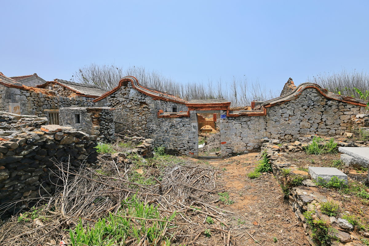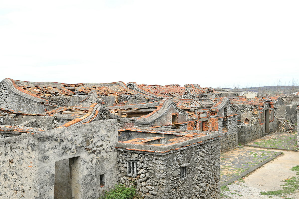 對比迄今熱鬧、商業氣息濃厚的二崁聚落,不妨也前往緊鄰於合界漁港的永成古厝一探究竟吧!將車停在威揚宮前的廣場,隨著小徑朝海岸漫步而去,不到200m的距離,映入眼簾的這片殘磚敗瓦的閩南建築,即是【永成古厝】,但昔日的永成古厝,不僅由同樣來自於金門的楊氏於此發跡,並以永安號這艘貨船做為創業的基礎,載運著民生物資、建材往返馬公、福建這條“透西線”進行貨運貿易,而後再利用其賺取的利潤,構建第二艘貨輪永發號,開展了家族繁盛之勢,當時隨著家族人口興旺,在此的古厝建築共有8間相當豪華的閩南式建築,不過後續因永安號遭遇海盜劫持、永發號觸礁沉沒,楊氏的永成古厝也隨著經濟命脈斷炊逐漸人去樓空,轉化為如今的殘破衰敗。