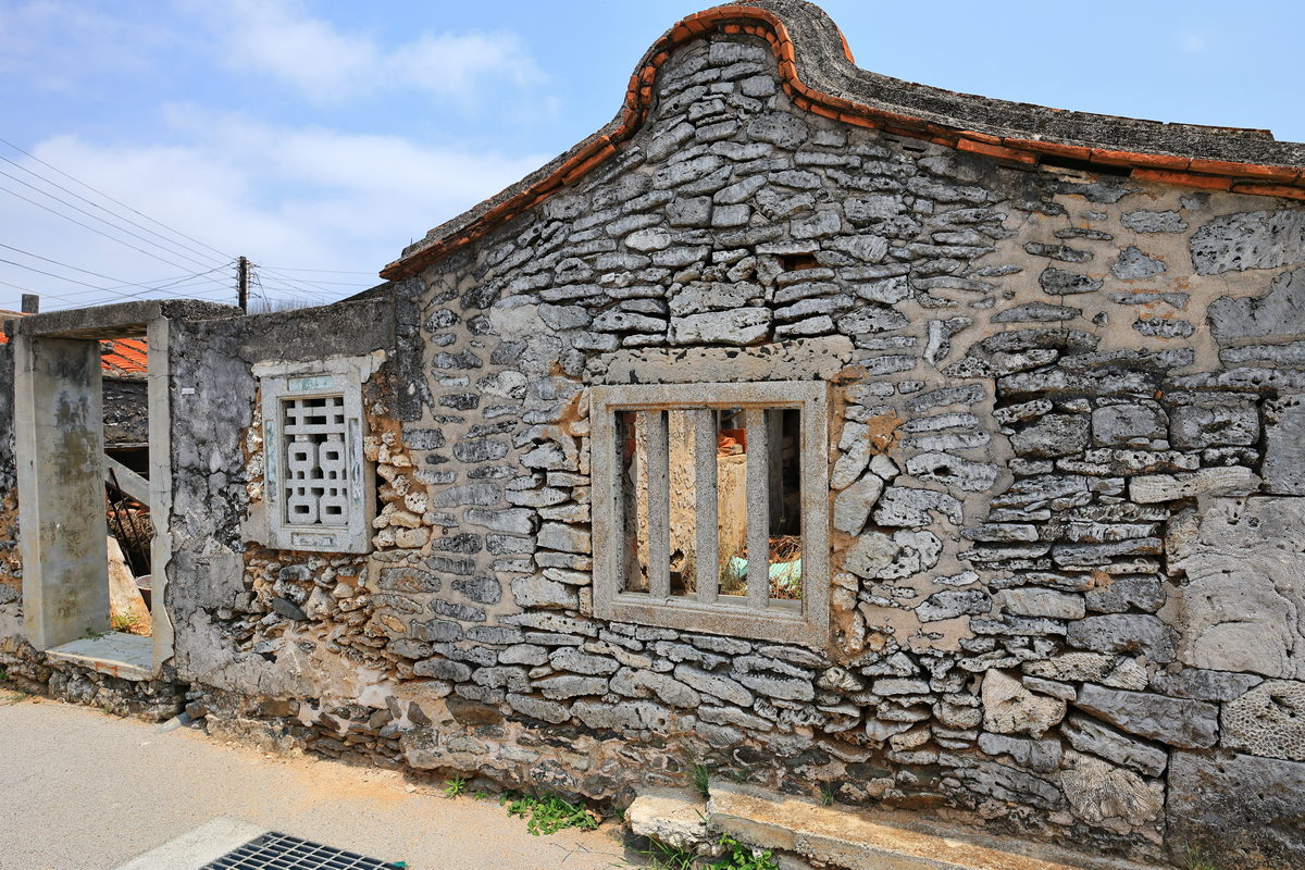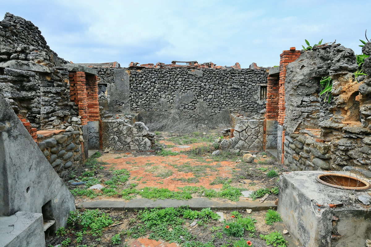 在建材取得不易的狀態下,四面環海的澎湖群島,蓋房所需的建材即是沿岸潮間帶即可取得的咕咾石,在當時這些來自海中的珊瑚礁雖然堅硬厚實,但同樣也挾帶濃厚的鹽份,因此當時人們於海中撿拾咕咾石後,還需經過日曬雨淋待鹽份去除後,才能將其運用於房屋建設,避免鹽份侵蝕木頭、磚瓦等其他建材,可見在澎湖生活資源的匱乏艱辛。