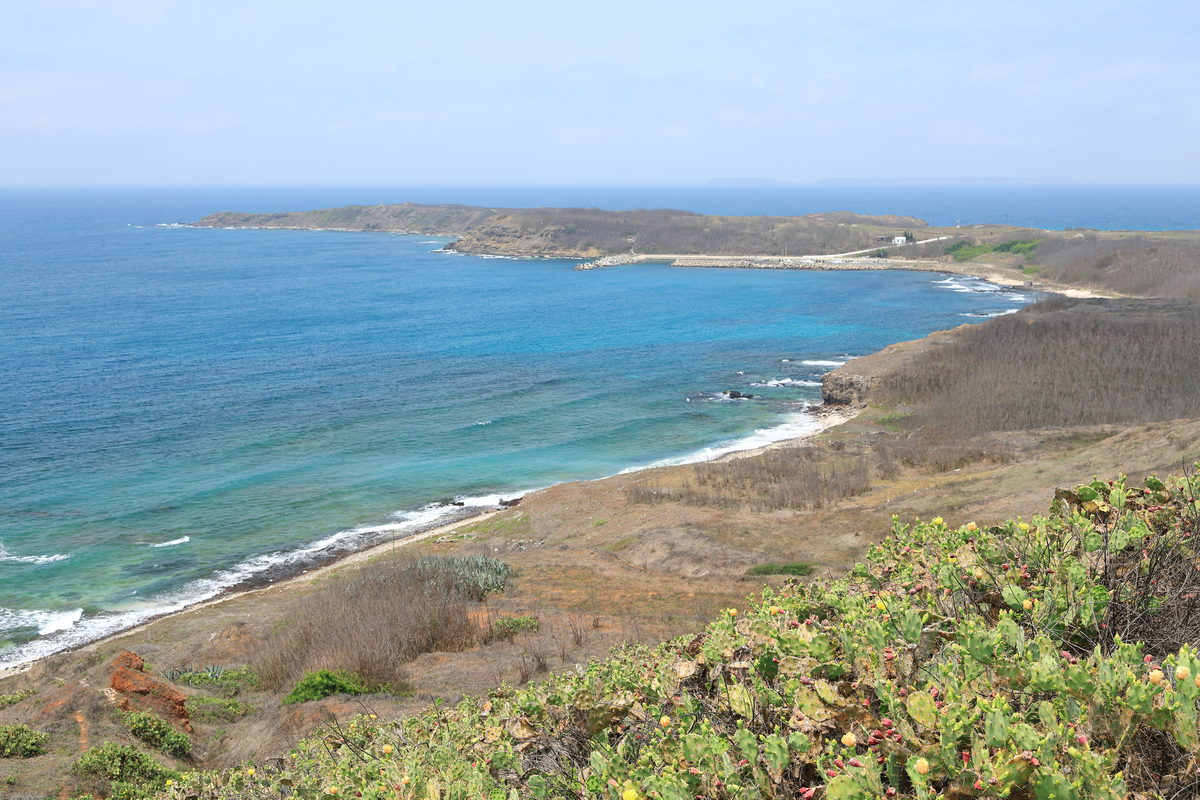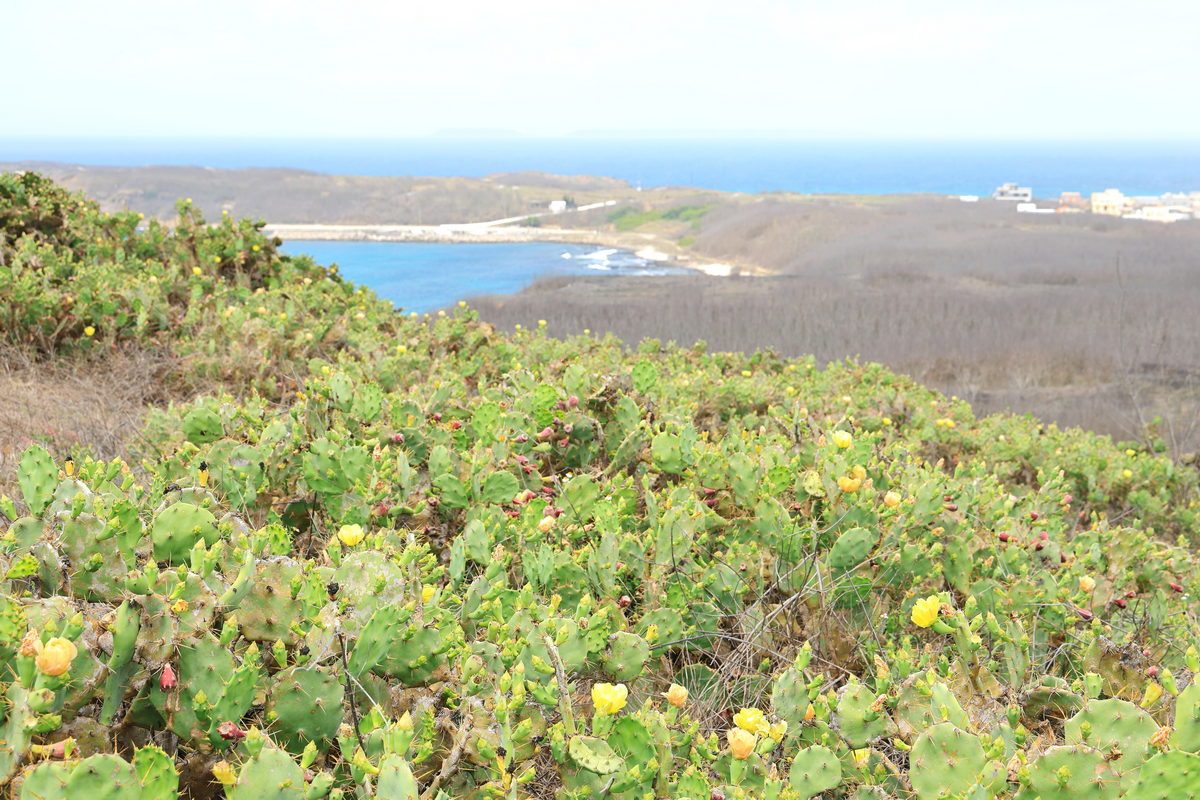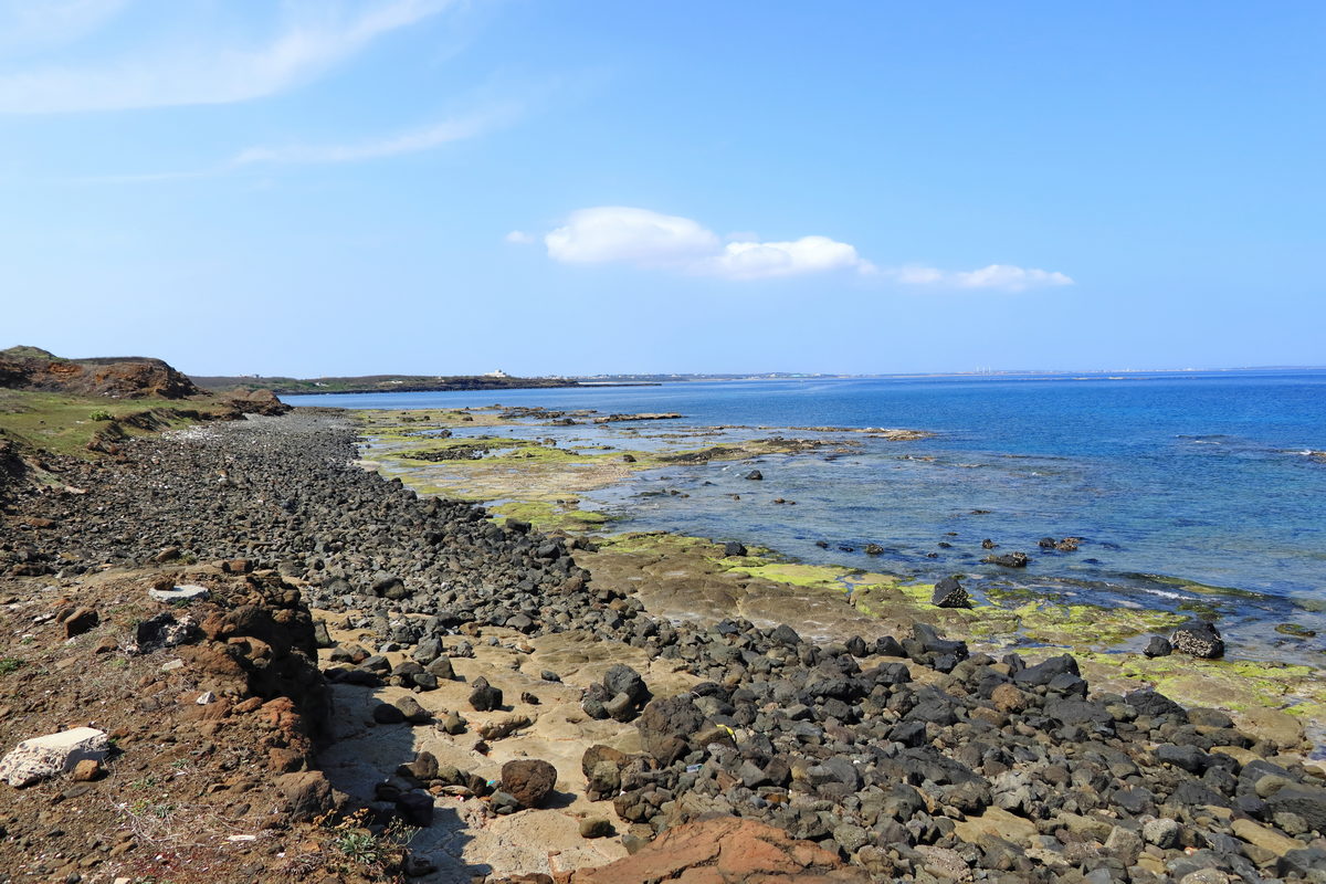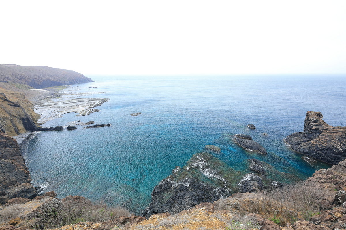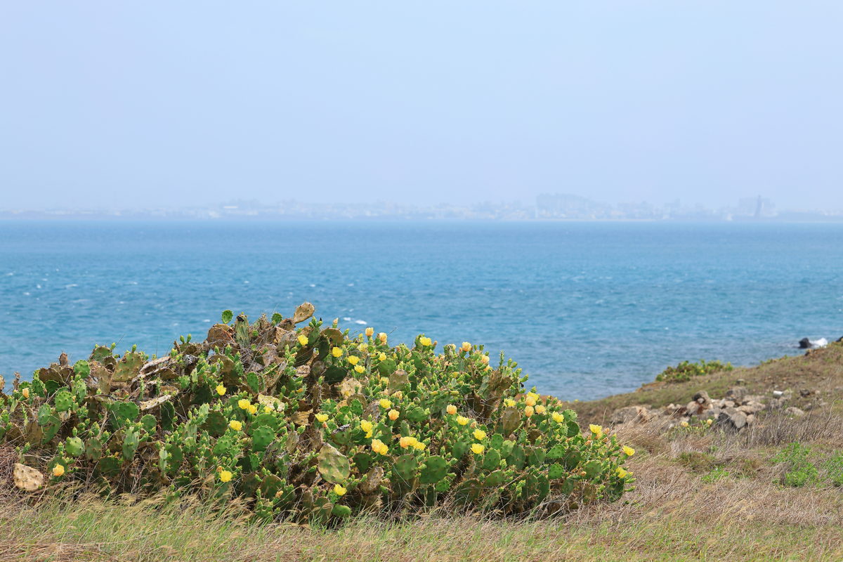 逛完花宅聚落,我們來到望安最高點的【天台山】做為旅程的尾聲,隨著階梯走向海拔僅53公尺的山頂,從眼前盛開艷麗色澤的仙人掌花朝山腳下的海岸望去,平緩的海岸地勢,搭配著清澈湛藍的海水,一切更是心曠神怡,同時做為綠蠵龜產卵棲地保護區的望安,也因其環境保育下,讓一切是如此的自然原始舒適,唯獨此行停留的時間太短,我想七美、望安這兩座島嶼相當值得找個晴朗豔陽的穩定天氣,租一輛機車,分別體驗個2天1夜,欣賞其晨昏、日落的靜謐景致,夜間無光害的璀璨銀河,以及遷徙至此生活的濃厚人文風情呢!