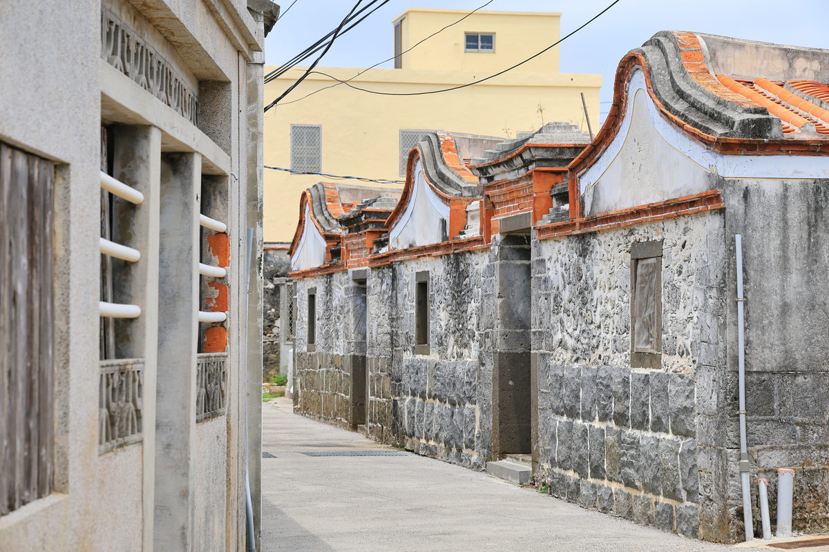 離開熱鬧的馬公市,前往白沙、西嶼,走向靜謐的小村落內,即可發現這些有著咾咕石的閩南傳統建築,我想探訪的首站即是前往最為熱門的【二崁聚落】,而這以陳氏家族為基底的二崁聚落,可追朔至南明永曆年間(1647-1661年),由來自金門的陳延益渡海遷徙至澎湖,而後隨著耕地不足,逐漸遷徙,並於第三代落腳於二崁,進而開枝散葉,而今二崁聚落這國內第一個傳統聚落保存區,其以咕咾石搭配玄武岩的牆身,並以花磚、交趾陶、泥塑作為裝飾的閩南建築聚落,則是移居台南經營中藥舖致富的陳嶺、陳邦二兄弟,於1910年光耀門楣的建築格局,百年後的迄今,隨著縣定古蹟以及傳統聚落保存區的維護下,讓二崁聚落不僅能欣賞獨具特色的咕咾石閩南建築,同時也能感受生於海島,轉往異鄉發展致富後,回歸鄉里的豪華建築風格。