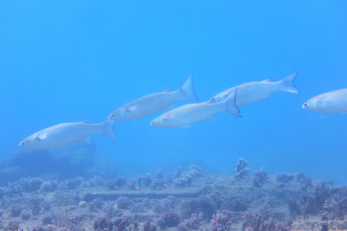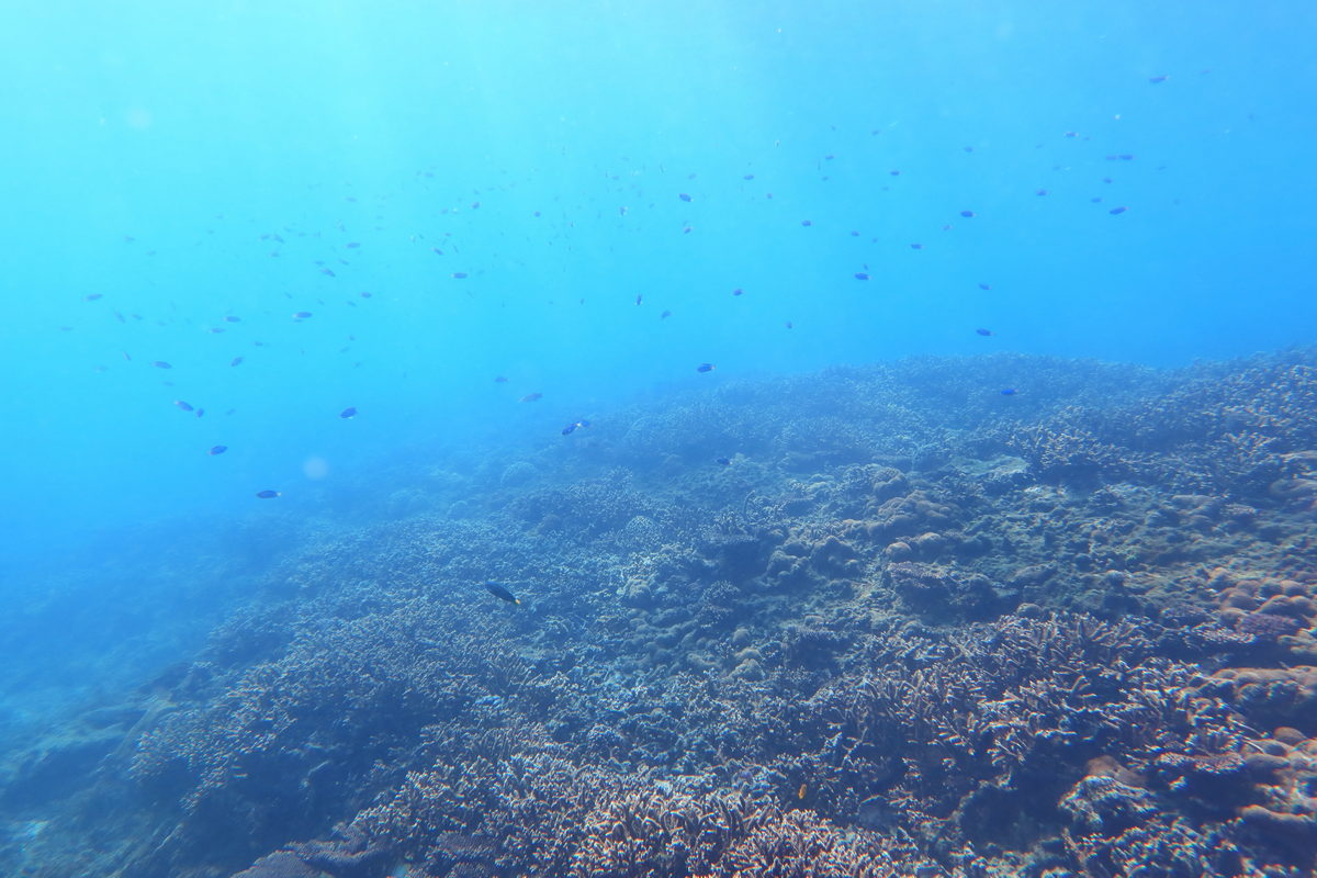結束七美、望安蜻蜓點水式的一日行程後,回到澎湖本島的隔天,天氣變得更為晴朗豔陽,同時風勢也轉弱許多,正是潛水的最佳時刻,而且在岸上欣賞了澎湖人取自珊瑚礁作為建材的咕咾石閩南建築,讓我更為好奇澎湖的水下的珊瑚礁生態究竟有多豐富呢?因此這次的潛水旅程,與在地好友【PADI 澎湖興仁潛水訓練中心】預約4支氣瓶的Fun Dive沿岸潛水行程,組裝完裝備,我們便隨著韋辰教練抵達位於鎖港杭灣的【珊瑚海洋花園】進行首支潛水活動,這處最大深度約5-6m的潛點中,顧名思義即是有著密集的大面積珊瑚群座落於其中,而這些各式各樣的珊瑚群,則是2016年澎湖縣政府水產種苗繁殖場人工繁殖出來的,透過珊瑚無性繁殖的特性,先以珊瑚枝條於繁殖場養育,茁壯後再放入移植磚並安置此處進行復育,因而造就眼前這片即為密集炫麗的珊瑚花海,也因茂盛的面積,同時也聚集了相當多的鸚哥、豆娘、雀鯛甚至是硨磲貝的完整生態體系呢!