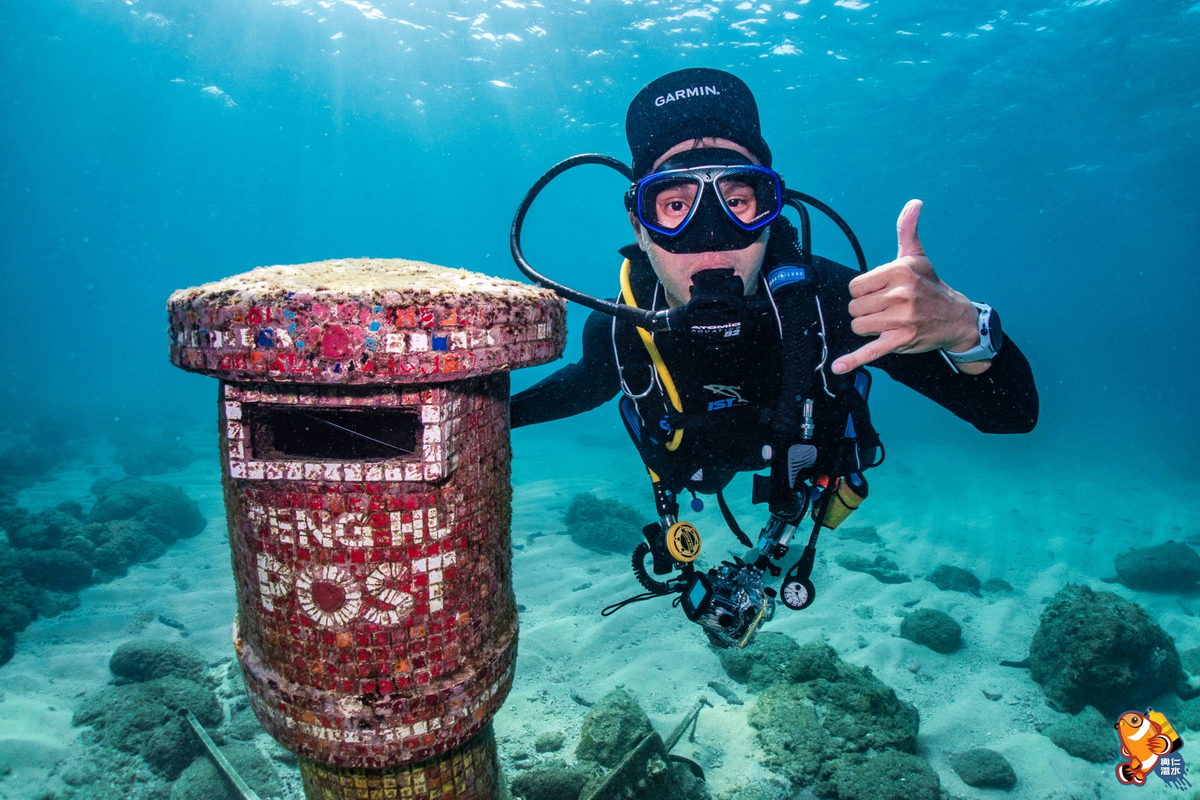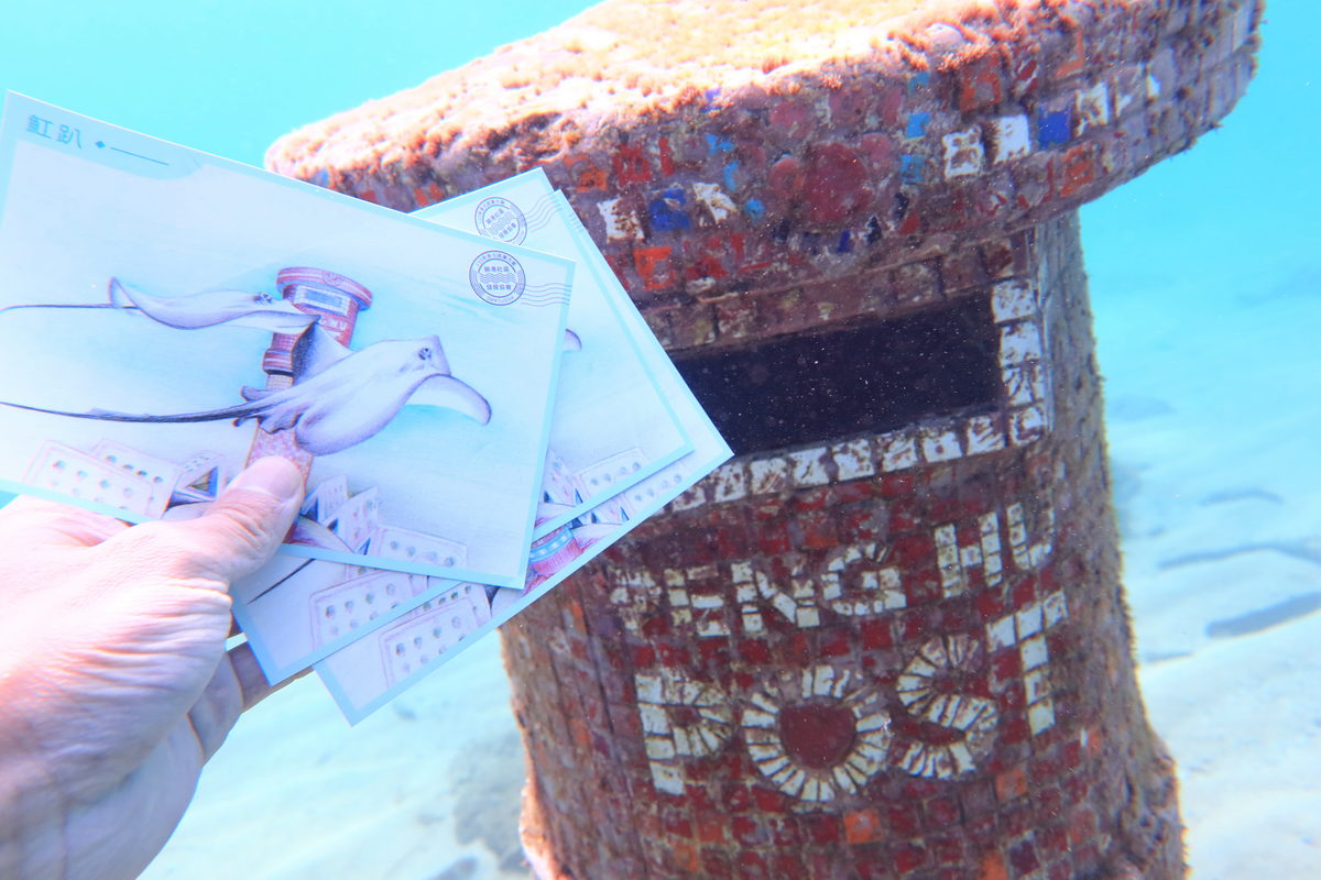 同時在這處不到6m深的潛點,對於浮潛甚至是體驗潛水的旅人來說,更是欣賞壯麗珊瑚群的親民好去處,此外在下水前,與潛水店購買好特製的明信片後,更能在台灣唯二的海底郵筒投下一張有趣的海底明信片,等待它飄洋過海的回到家中回味此行的旅行記憶呢!