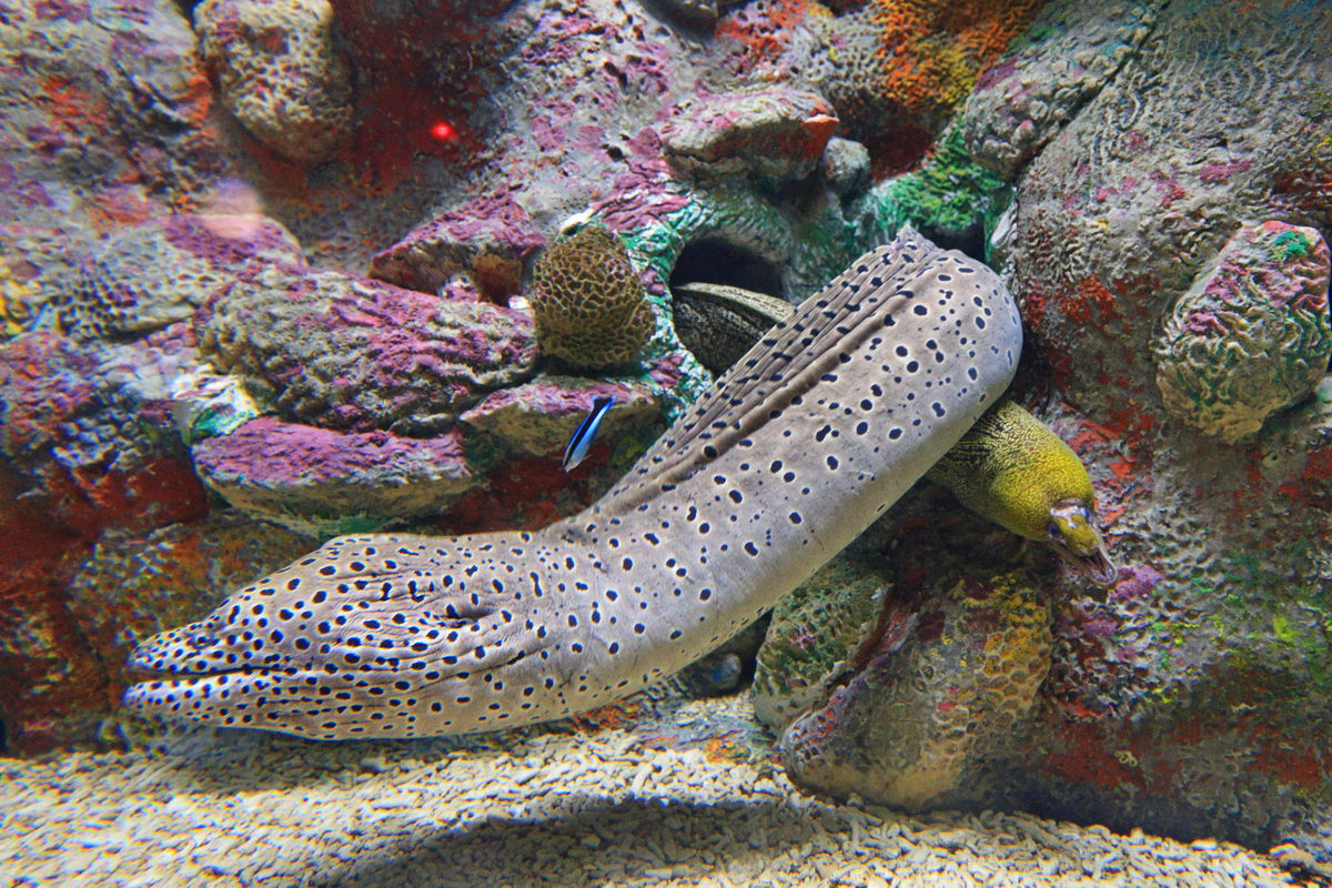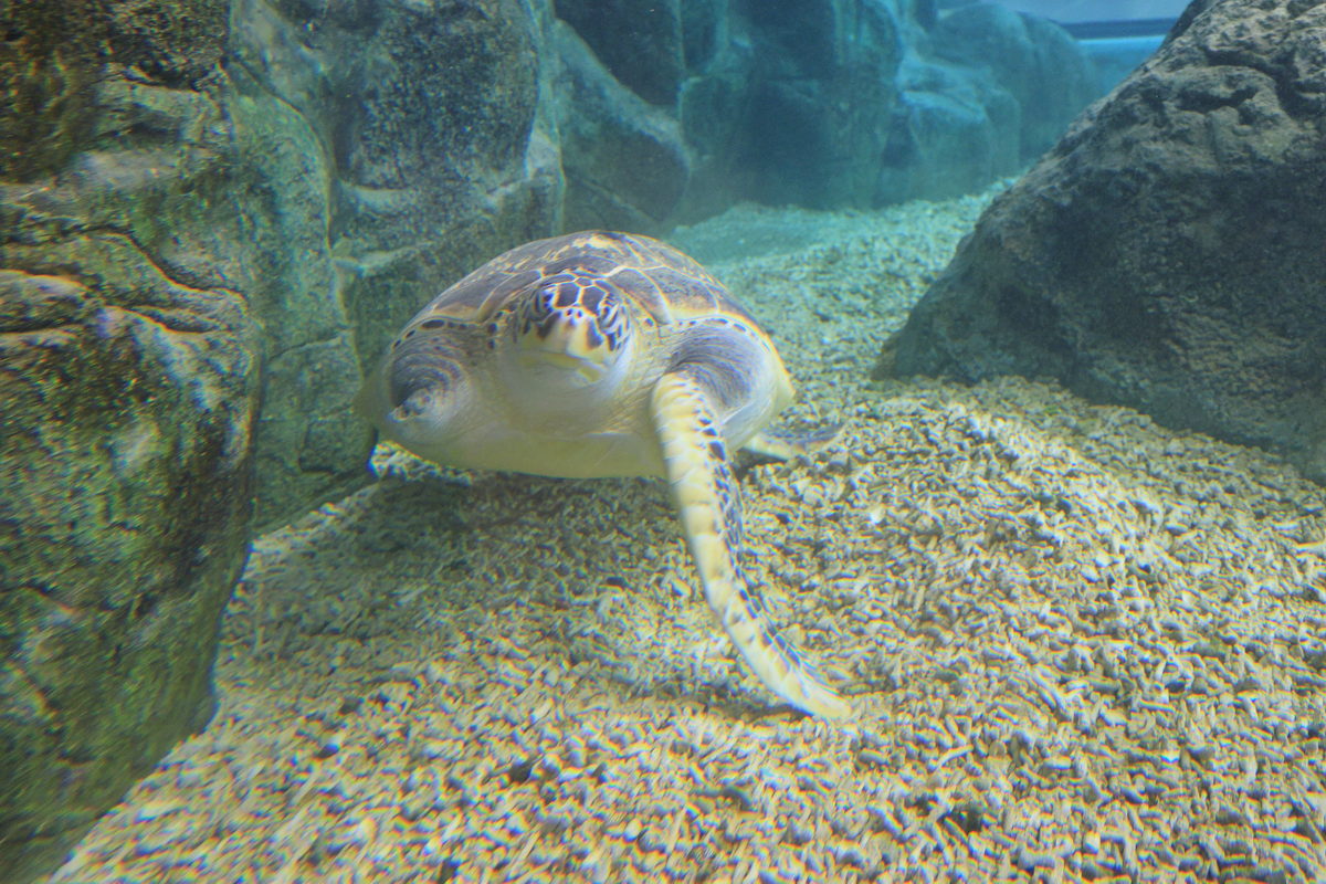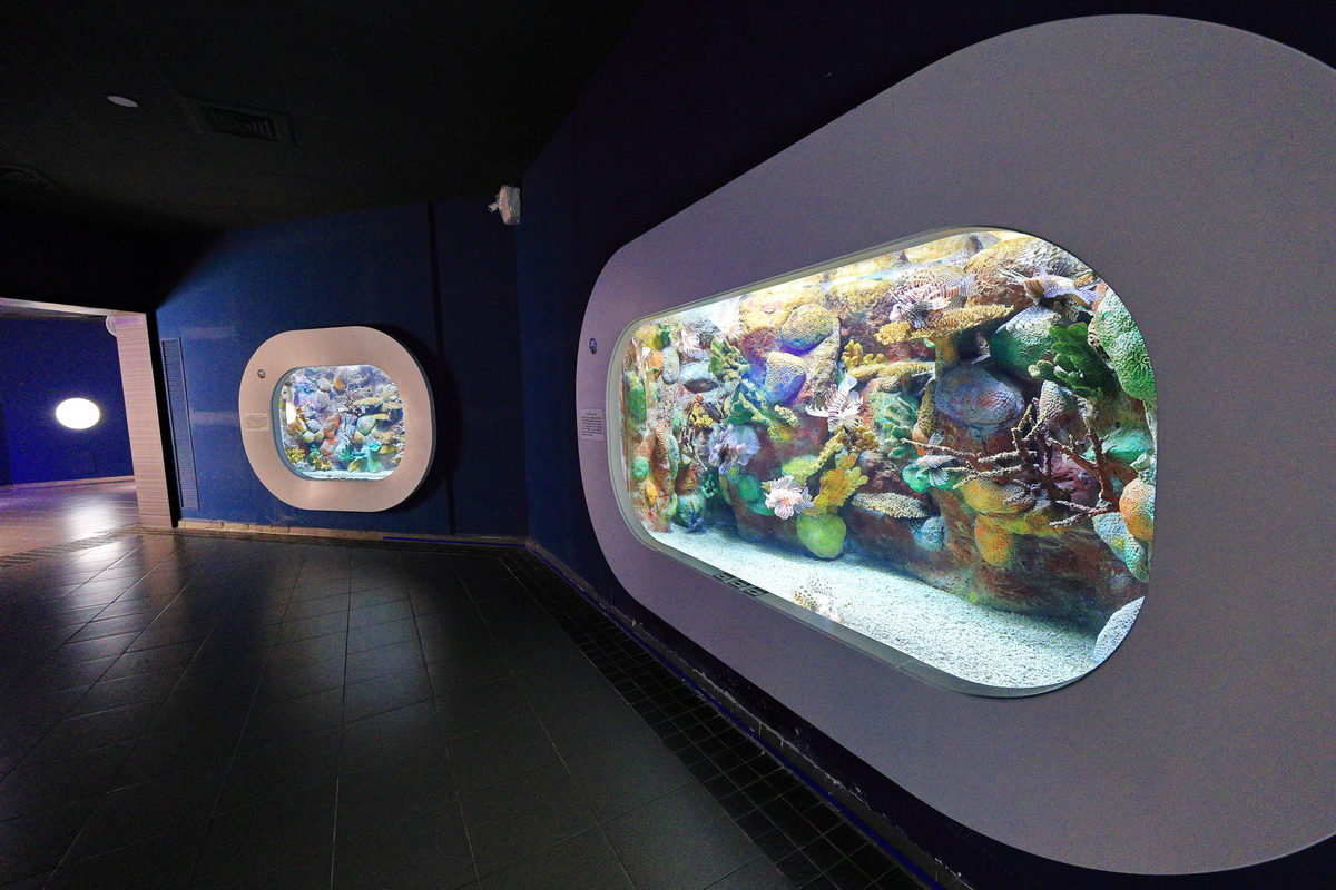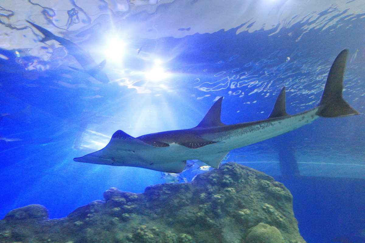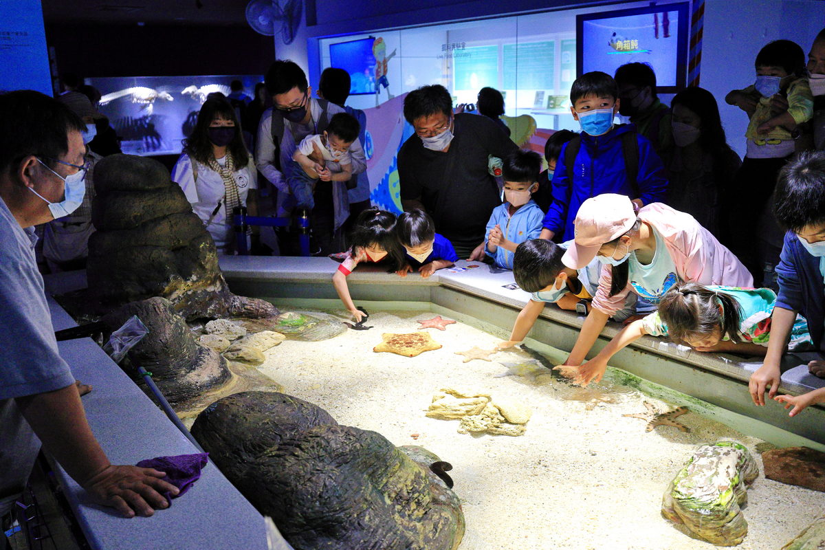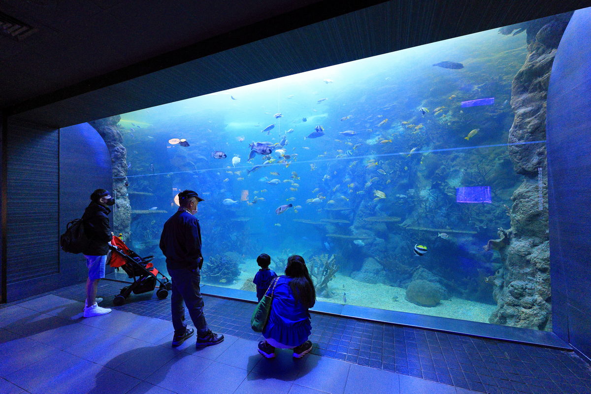 除了能透過浮潛、潛水一窺澎湖水下豐富的珊瑚生態之外,對於不黯水性的旅人來說,造訪一趟澎湖水族館,來場乾爽的水下旅程更是不錯的選擇,走進水族館,不僅能隨著解說一同觀察了解澎湖近海的魚種之外,同時水族館也與大家分享從早期養殖技術的不足因而以捕撈豢養,逐漸轉化為人工養殖與救援照護的永續保育意識觀念,其中就有一隻前臂因漁網纏繞而截肢的綠蠵龜,經過救援卻無法回歸大海因此住在水族館接受妥善的照顧,再加上穿梭於海底隧道與牛港鰺魚群一同賽跑,或是欣賞大洋池中巨大石斑的餵食、像是鯊魚又像魟魚的鱝(音同:憤),各式珊瑚的解說、療癒的水母悠游等場館,相當適合親子一同在此慢慢觀察,建立海洋保育觀念的好去處呢。