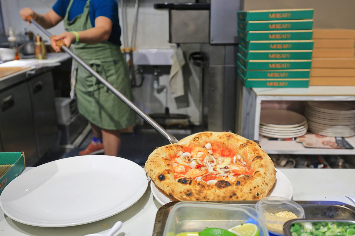 若是吃膩了中式海鮮料理,不妨轉往馬公市北辰市場旁的【瑪咖朵披薩 Mercato Pizza】嚐嚐吧,因為喜愛披薩的美味,親自遠赴義大利拿坡里學習傳統技藝的老闆Liya,更是將台灣難得一件的雲朵披薩帶回來與大家分享,透過身為澎湖在地人的豐富海鮮知識、雲朵披薩製作的巧手,讓既定印象中的披薩,從舖滿地鮮甜海味餅皮,隨著雲朵披薩特有的蓬鬆柔軟一同捲起品嚐,越嚼越香的餅皮與火烤海鮮特有的鹹鮮,品味海鮮也能如同漫步雲端的美妙呢!