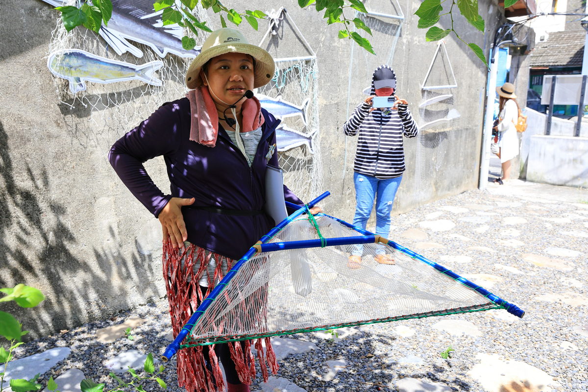 走出碾米廠老屋,在一旁結滿酸甜可口桑椹的樹下乘涼,吃著桑椹的同時聽著玲芳分享大武沿海的漁業生活,從針對不同目標魚種、季節而有不同捕撈方式的近海漁業,到看似吻仔魚但其實是於海水、淡水兩側迴游的日本禿頭鯊捕撈方式,才知道其實近海漁業捕撈並非想像中的負面,而是隨著季節的輪轉,捕撈當季繁盛的新鮮魚種,進而讓一年四季有著多元的漁獲,同時也保有資源生生不息的永續意念。
