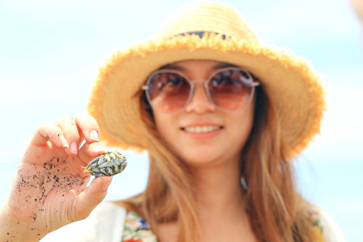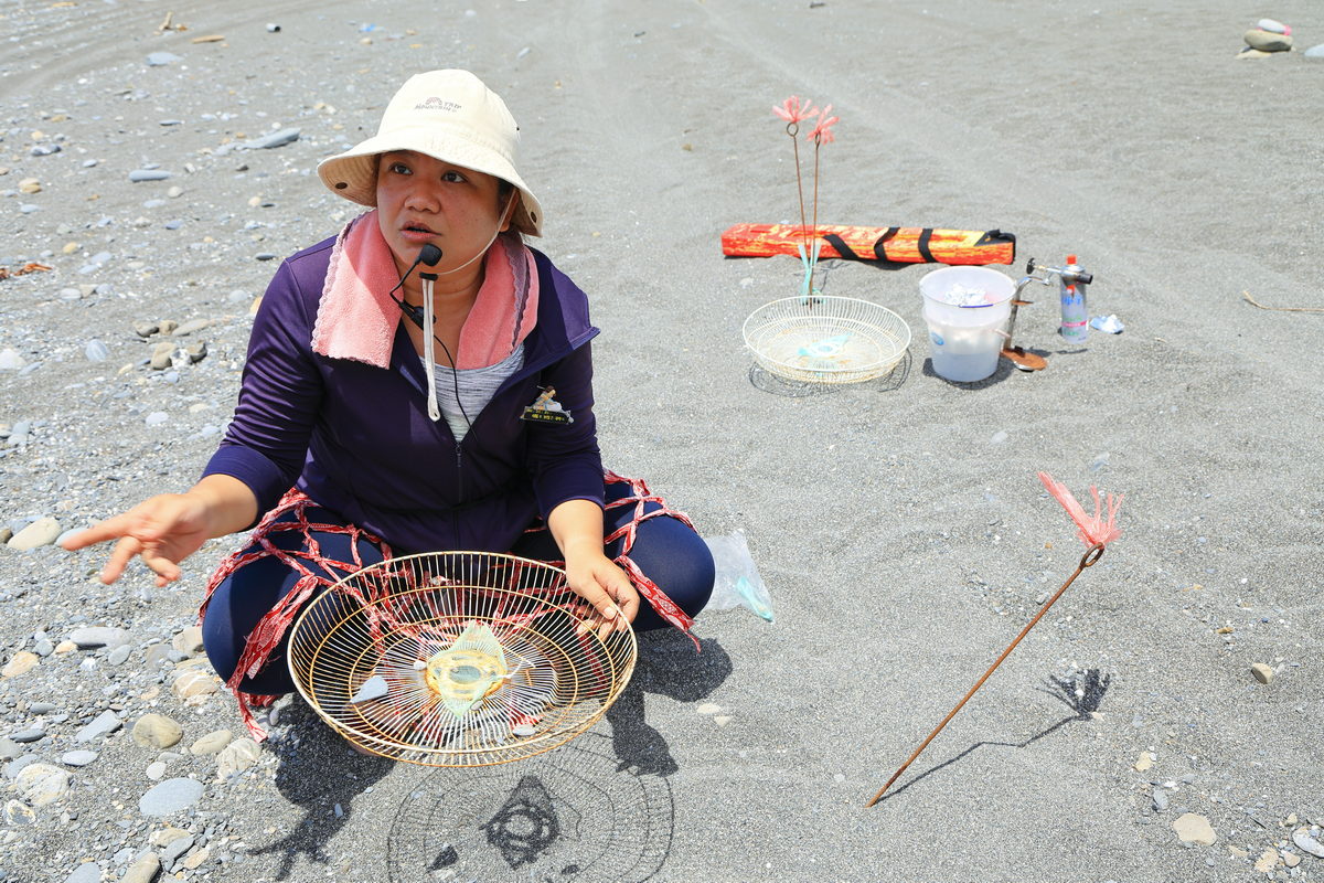 走讀完大武村昔日的風華後,我們穿過濱海公路抵達湛藍的太平洋海岸,在此不只是為了欣賞這片充滿層次的壯闊藍海,而是準備尋找又稱“倒退嚕”的浪花蟹,而我們將牠喜愛的秋刀魚塊裝進網袋中,並綁妥於鋼筋上,尋找一處海浪來回拍打的沙灘,並將裝有餌料的鋼筋插入沙灘之中,隨著海浪來回沖刷餌料散發氣味,約莫30分鐘即可嘗試尋找浪花蟹是否造訪,而在等待的同時,我們愜意的撿拾沙灘上的漂流木,挖一個沙坑來場沙窯悶烤雞蛋,隨著等待時間到,回到海邊,利用電風扇的外罩當濾網,插入沙灘並將鋼筋周圍的砂石挖入電風扇外罩,透過海水沖洗過濾,而眼前一隻貌似砂石的浪花蟹隨即浮現,隨著體驗昔日居住於海岸的村民消遣娛樂,感受大武村老街與海岸間的互動風華,更是欣賞風景之於,相當有趣的深度旅行呢!