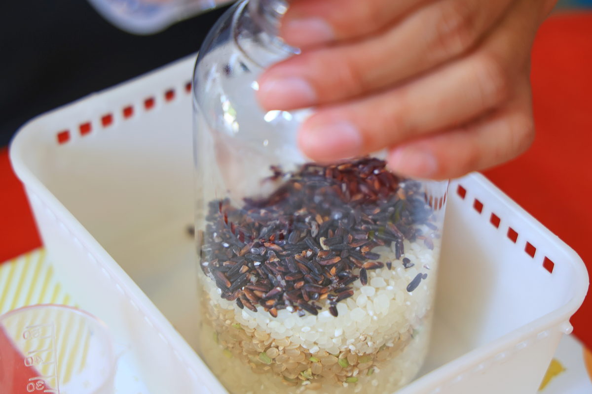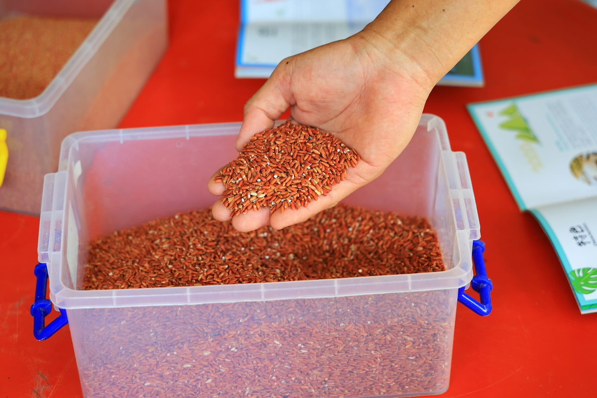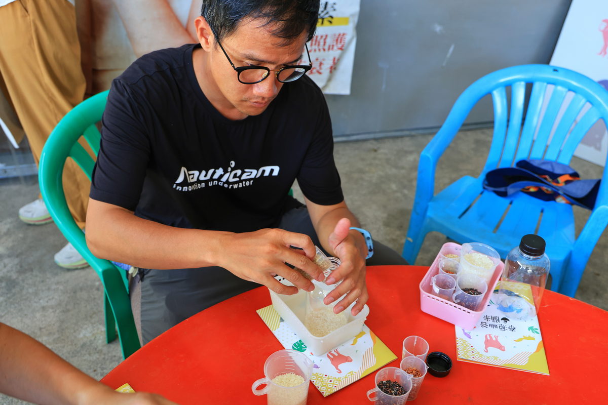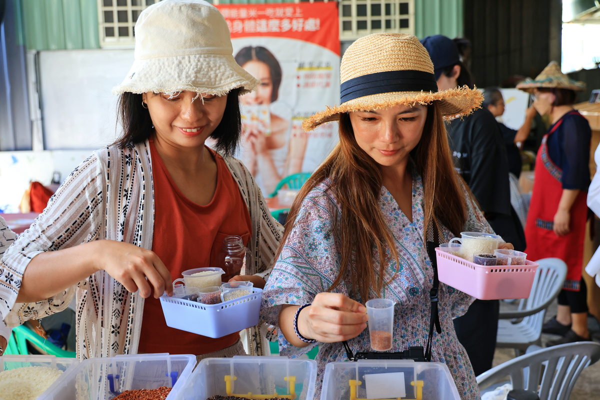 因此我們拜訪了座落於優美水田旁的【泰源幽谷獼米】,透過主理人阿美族的黃忠文、蔡禮闈夫婦的分享辭去公職返鄉,與父母重新學習務農,在這片翠綠環山下以不施肥、不用藥的自然無毒農法種植著各式稻米作物,也因在這自然靜謐的盆地環境,山間的獼猴常在夜裡下山品味著天然純淨的穀物,一同與萬物分享的理念,發展為獼米的有趣意念,這次的造訪,他們以收成的新米依照來訪的旅人人數,去殼輾打對應數量的新鮮稻米,同時我們一同以白米、黑米、紅米、糙米與紅藜製作相當健康且賞心悅目的五色米帶回家煮食,而在現場也以煮熟的五色米,愜意的搭配喜歡的蔬菜、肉類,包裹成一顆顆晶瑩剔透的飯糰,在這片翠綠的山林盆地中,品味著五色米香越嚼越滿是稻香的Q甜美味,真是閒情逸致呢!