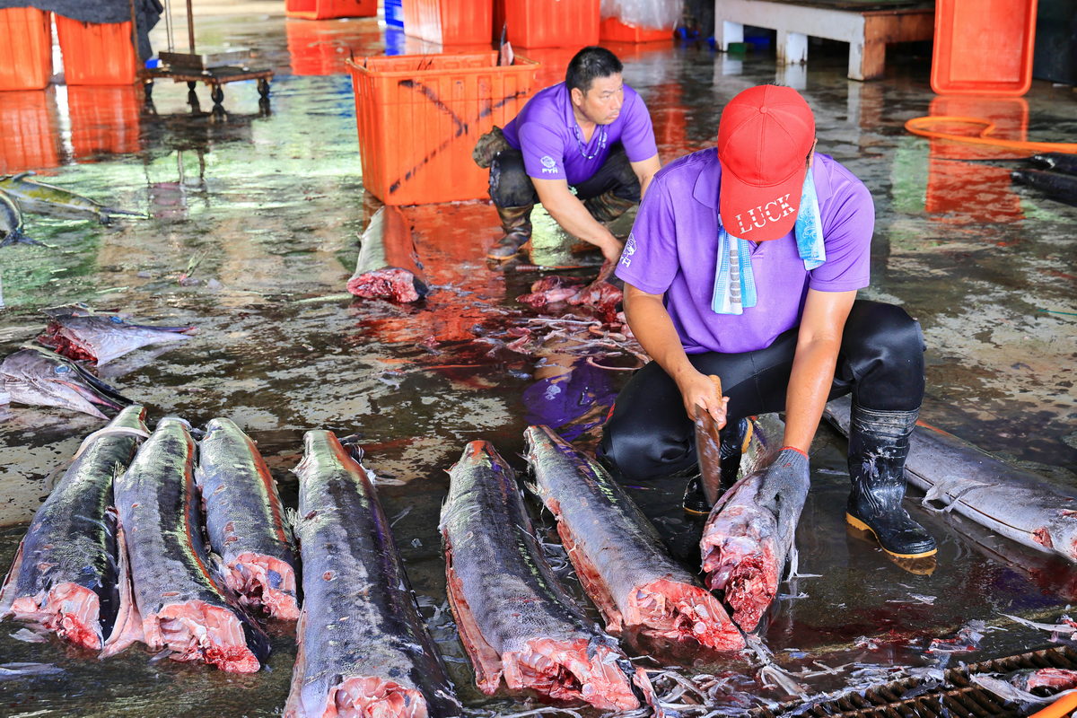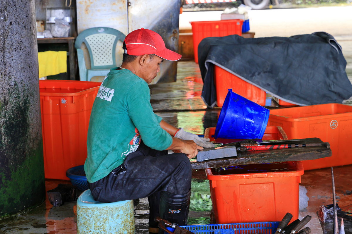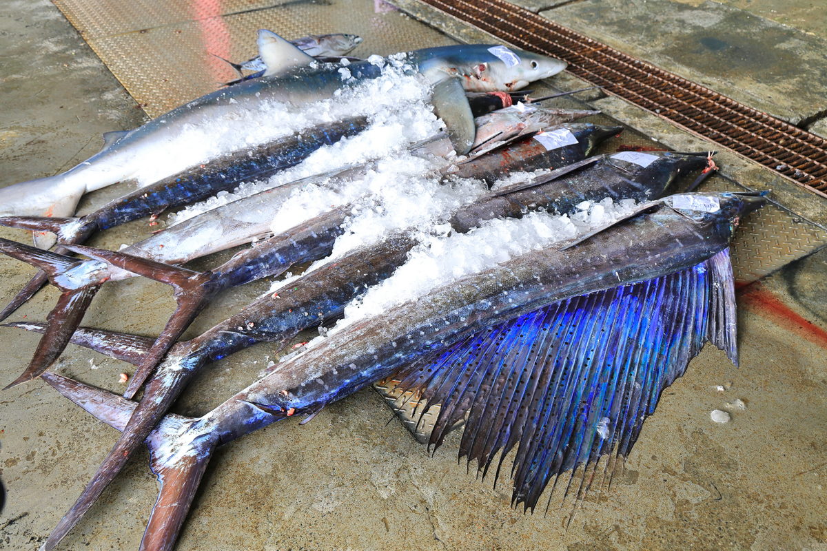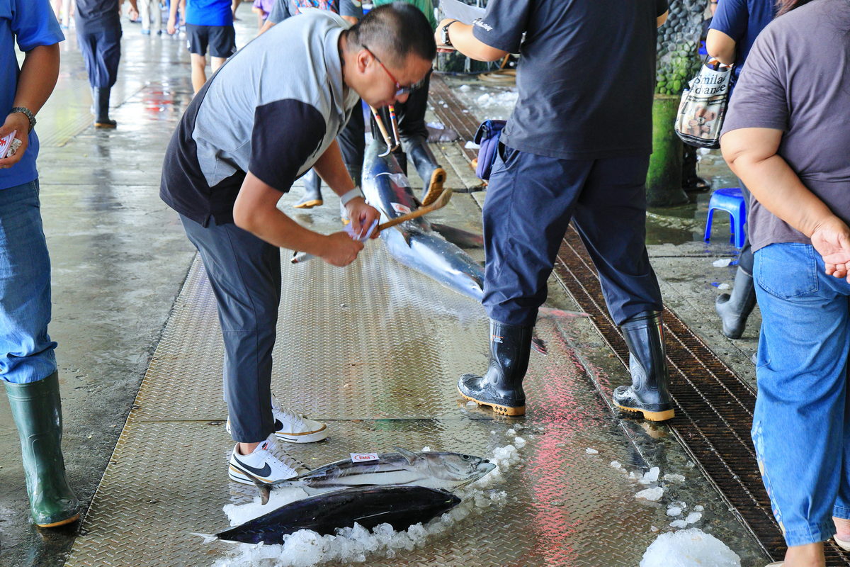 回到岸邊簡單沖洗後,正值飢腸轆轆的中午時刻,不如往北前往東海岸最大的魚貨中心【成功漁港】尋訪尚青的海味吧,抵達昔日稱作新港漁港的成功漁港,首先映入眼簾的即是呼應此處發達漁業的船體造型建築,走進建築,等待我們的是家族4代皆從事在地水產事業的【順大新港黑潮海鮮餐廳】王小姐,因為在此品味來自於太平洋黑潮的新鮮海味之前,我們首先了解漁獲從何而來?於是隨著王小姐一同進入其中,欣賞著透過需要站在高聳的標台上,進行既危險又難度相當高的擲標技術,捕撈隨著浪花奔馳的旗魚之漁船,將一尾尾龐大又艷麗的旗魚吊掛上岸、東海岸常見同時也是外銷北美製作成魚排,卻台灣人鮮少品嚐的鬼頭刀,以及各式隨著太平洋黑潮來訪的各式當季魚種,皆匯集於此,而最熱鬧非凡的莫過於漁會糶(音同:跳)手俐落的手勢與喊價的拍賣現場,只要一個眼神、一個微小的手勢,都是商家之間瞬息萬變的競標過程,而在競標完成後,商家隨即將得標的漁獲移至一旁的解魚分切區,這從上岸、銷售到分切的一條龍過程,不僅源自日治時代即有的銷售程序,熱鬧的氛圍不僅內行看的是門道,對我們這外行的遊客,看了更是過癮。