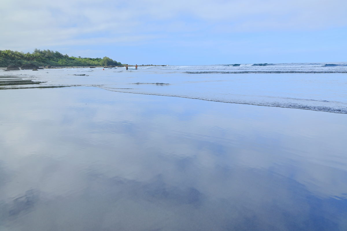 夏季陽光可能對許多人來說炙熱的相當難耐,但是東海岸的炙熱,卻會因陽光於中午過後逐漸越過中央山脈抵達台灣西部,進而快速轉為清涼,因此在品味完沁涼暢快的午茶時光後,我們趁著退潮時分前往有著天空之鏡之稱的【都歷沙灘】踏踏涼快海水吧!