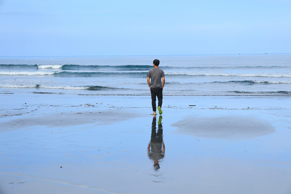 走進這片阿美族傳統海域的都歷沙灘(Pacefongan 巴茲風岸),其獨特的黑色沙灘,透過退潮時分海水撫平浸潤令其有著鏡面般的平滑,再加上下午陽光從中央山脈側朝向太平洋的斜射,進而造就海天一色的夢幻鏡面景致,而捲起褲管、穿著夾腳拖愜意地在沙灘上漫步,欣賞的海面上衝浪的旅人以及地面上快速奔走的可愛寄居蟹,海浪傳來的平穩聲浪,此時此刻舒適帶來的靜謐,更是一種唯美的享受呢!