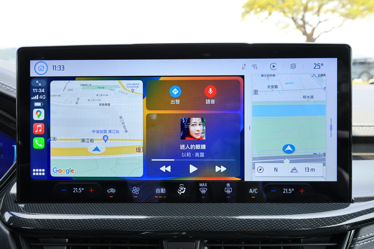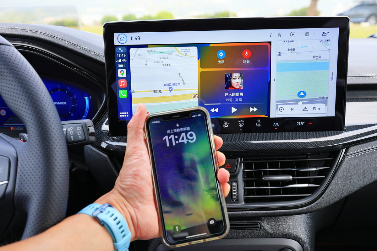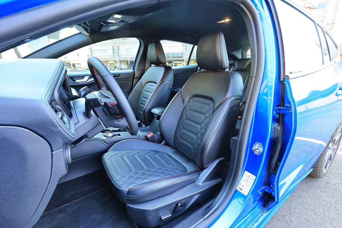 進入車室,從相當服貼背部身形、大腿支撐,同時與豪華車同級的Ford Sensico®時尚永續皮革座椅、優雅質感的Vignale軟質包覆中控台與運動時尚感兼具ST-Line專屬運動碳纖維紋路內飾板的搭配、清晰明亮2K解析度的13.2吋懸浮式全彩LCD觸控大螢幕所搭載全新SYNC®4娛樂通訊整合系統,進而享受更為快意直覺的無線Apple CarPlay® / Android AutoTM音樂串聯,從丹麥B&O環艙音響完美展現飽滿音場饗宴,並且設有無線充電板與前後各2座USB充電孔,共計5處充電設施,讓全車5人一同出遊時,能有著舒適沁涼雙區恆溫的乘坐大空間,享受明亮暢快地沿途風景同時,隨時能快意的將行動裝置充飽電,我想Focus Wagon所營造義式奢華精品氣息的Vignale座艙,更是相當完美的GT旅行配置呢!
