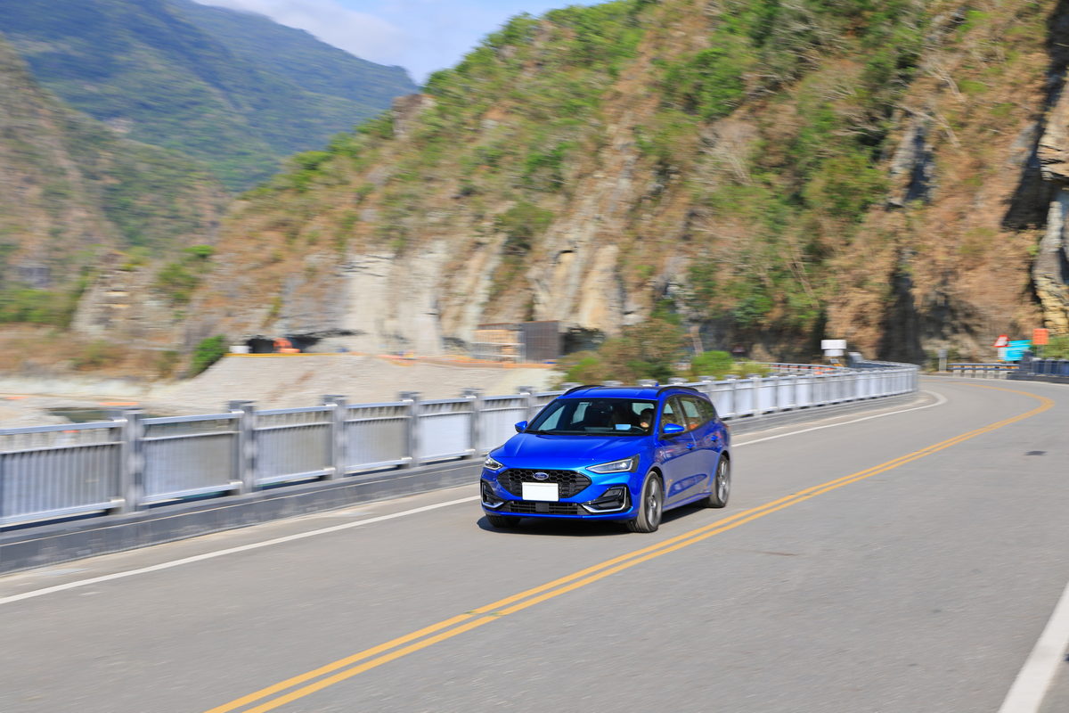 此外面對山道上的九彎十八拐,Focus Wagon的前麥花臣、後配備副車架與防傾桿的多連桿懸吊設計,已是提供十足的過彎支撐性,同時此行駕駛ST-Line Vignale版的Focus Wagon,更是將懸吊進行更為運動桿的ST-Line調教設定並再降低10mm車高,並搭配著235/40 R18 Michelin Pilot Sport 4性能跑胎,不僅整體視覺上更具運動化的氣勢感,同時更讓這部Focus Wagon減速殺入彎道並於出彎點時再加速這一段過程,緊貼於路面之上,擺脫彎道像是熱刀切奶油一樣的快意舒暢呢!