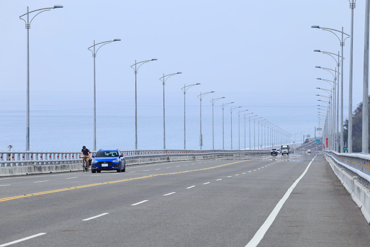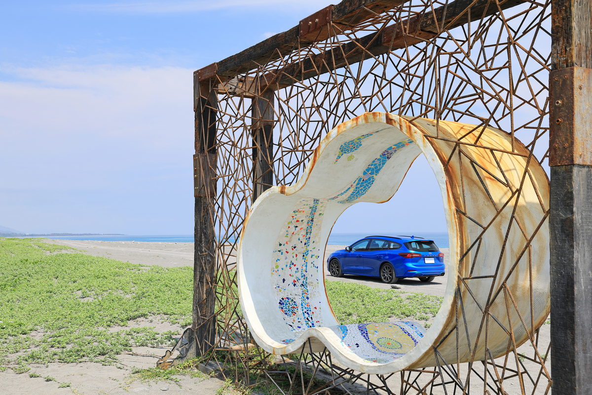 既然無法如願走完一趟南橫公路欣賞完整的中央山脈險峻景致,那麼換個心情繼續往南,轉往串起太平洋與台灣海峽的南迴公路完成一趟環島旅行吧,對比前幾日因為陰天而顯得冷色調的海洋,此行隨著南迴公路逐漸南下,天氣也隨著陽光加溫下逐漸晴朗開懷,從每次行經必定一覽太平洋灣岸的金崙大橋開始,享受奔馳於濱海公路的暢快、穿過金崙隧道來到大橋下欣賞阿美族藝術家哈拿‧葛琉於此創作的“方圓之間”,感受其天地萬物之間共生的柔和之美、抑或是隨處寬敞可停車獨享眼前一片無盡湛藍太平洋海景的大武海岸路段,對我來說更是每一次行駛南迴公路東部海岸路段時,流連忘返的湛藍景致,而這段公路隨著進入達仁鄉而穿越山區路段,來到台灣西部的台灣海峽,又是不同的海岸風情,從台9線尾聲與台1線交界處清澈見底的淺海灣岸,到旗津海岸欣賞準備進入世界第18大港口高雄港的海上貨輪群,在這晴朗的艷陽下,將海洋湛藍、Focus Wagon荒島藍的車色嶄露的飽和艷麗,讓這一段從池上轉往高雄旗津海岸的215km公路移動旅程,享受陽光、海洋、空氣漫射帶來不同氛圍的異國情調呢!