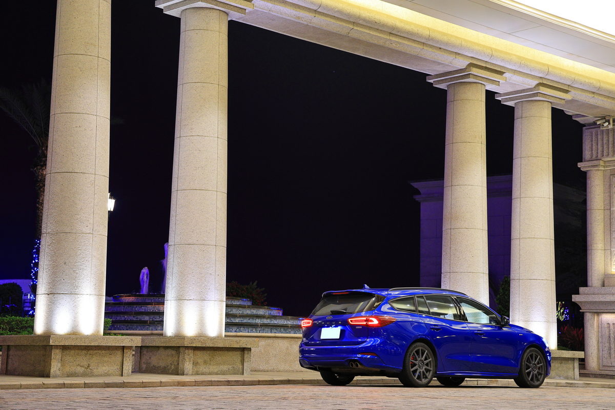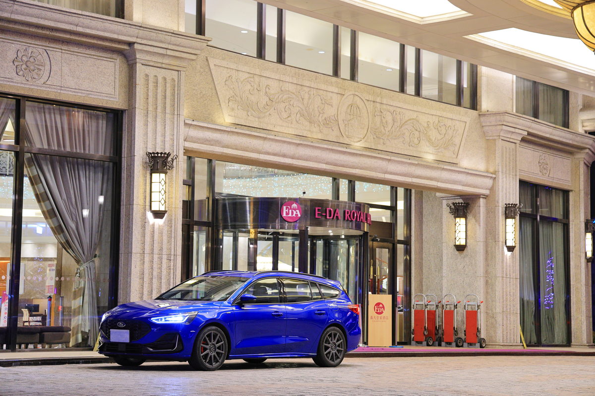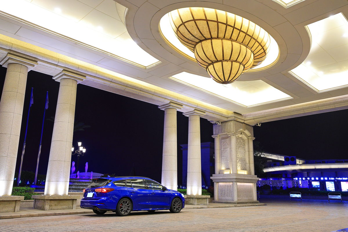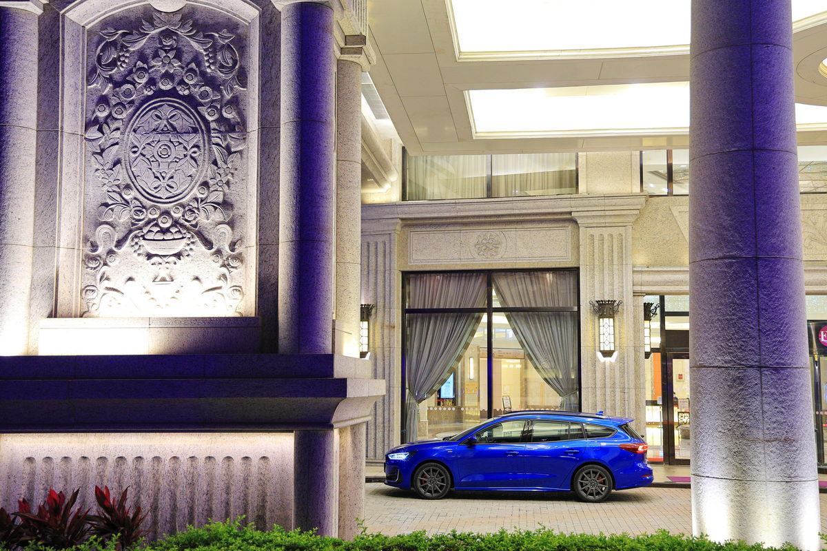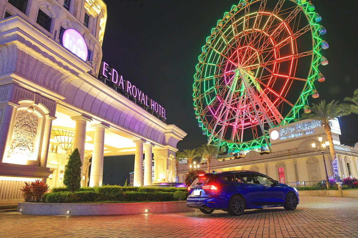 將Focus Wagon開向義大皇家酒店的車道迴廊,準備辦理Check in入住手續時,富麗堂皇的建築夜景,映襯著歐洲自駕旅行時相當主流的旅行車型,讓開著Focus Wagon從東部海岸繞過半個台灣至此的公路旅行,像極了暢遊於歐洲山海鄉村之間,最後回到城市準備搭機返台的海外自駕GT旅行浪漫氛圍呢!