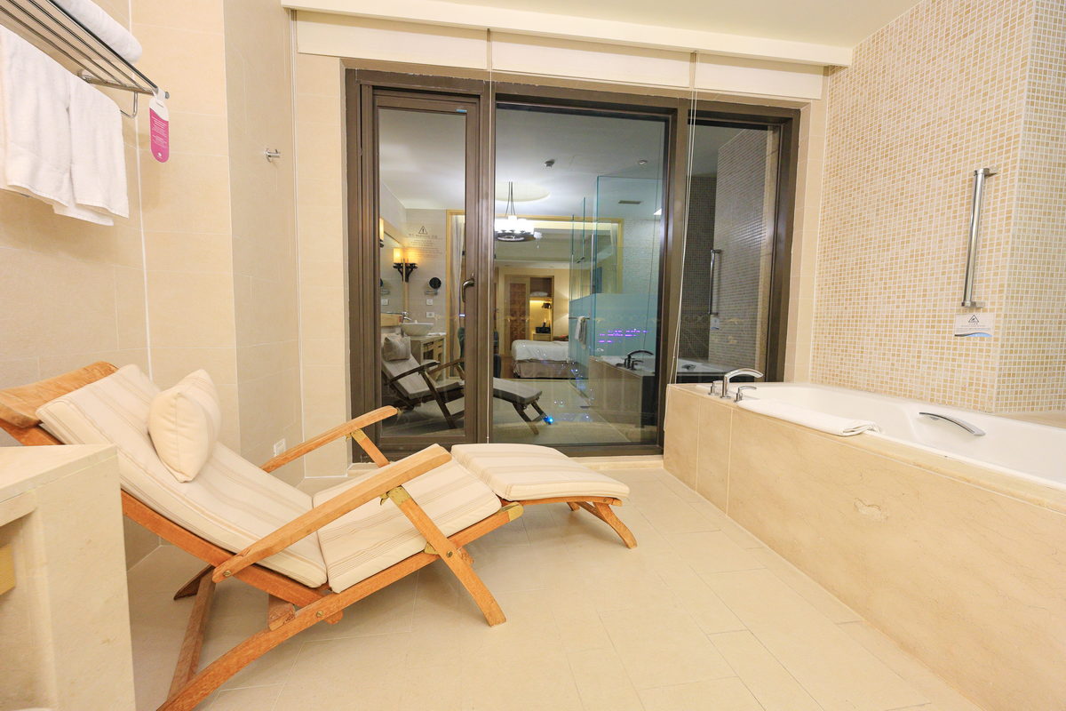 走進義大皇家酒店,眼前氣勢磅礡如同歐式宮殿的大廳、典雅的客房迴廊,甚至是寬敞客房與乾濕分離的衛浴空間,猶如置身於歐洲飯店般的豪華感受,此外走進義大利餐廳吃著此行入住的吃到飽方案,大啖現做披薩、千層麵等美食後再隨著通道走向對街的Outlet買上一回,更是旅程滿載而歸的完美句點呢。