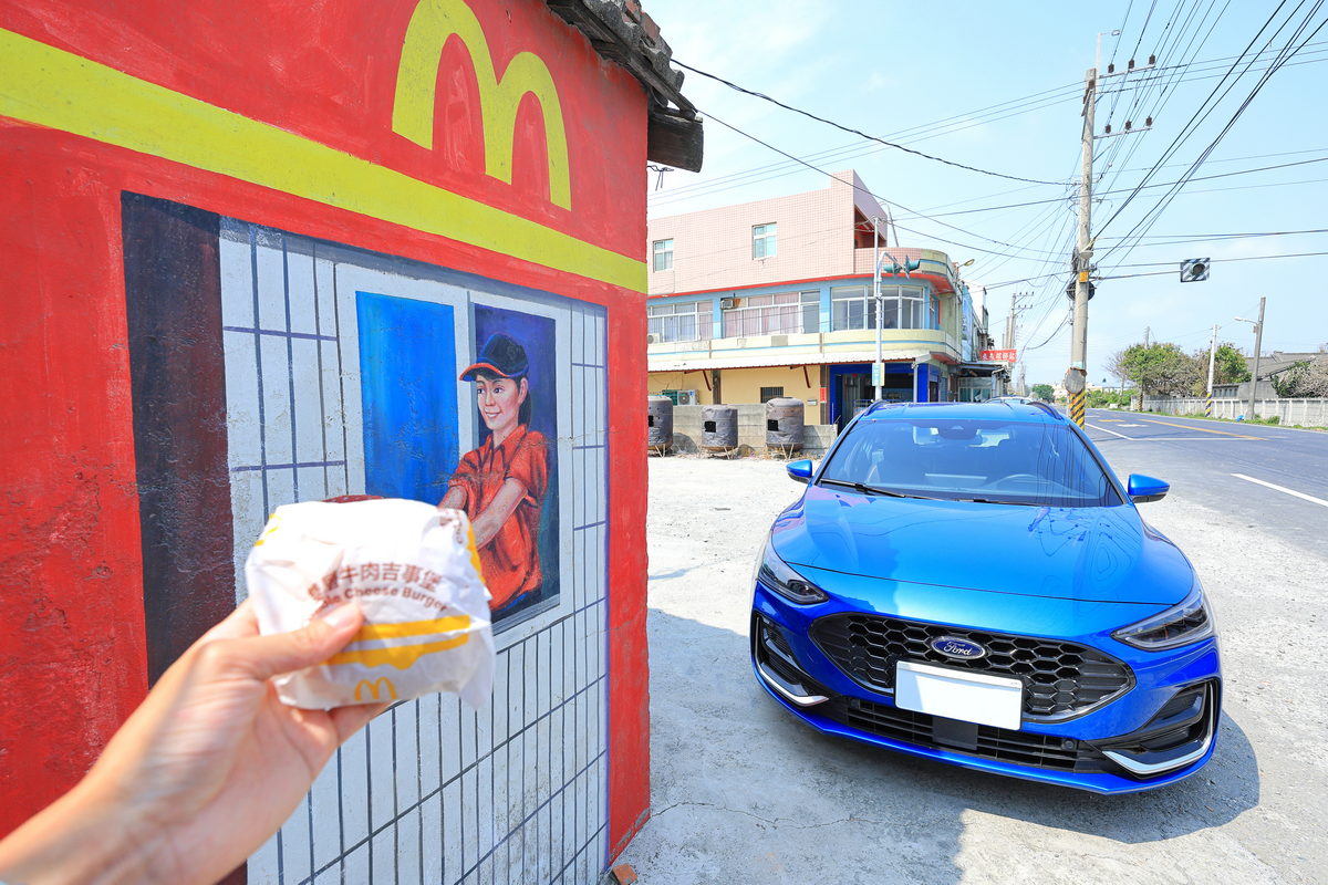 沒想到,此行南橫公路的插曲,進而造就了一趟環島旅行,離開高雄北返時,想起Ford Focus充滿台灣在地氛圍的廣告,因此一時興起的我,行經彰化時轉往位於芳苑的漢寶村鎮安宮,造訪這座寧靜的小村落並非特地在此參拜,而是鎮安宮的對面有一間極具童趣的手繪麥當勞,將Focus Wagon停在一旁,拿出預先買好的漢堡,在“漢寶”村這間麥當買得來速像是買了一份漢堡,不僅像是與廣告致敬一樣的體驗台灣在地風情,同時更充滿會心一笑的樂趣呢!
