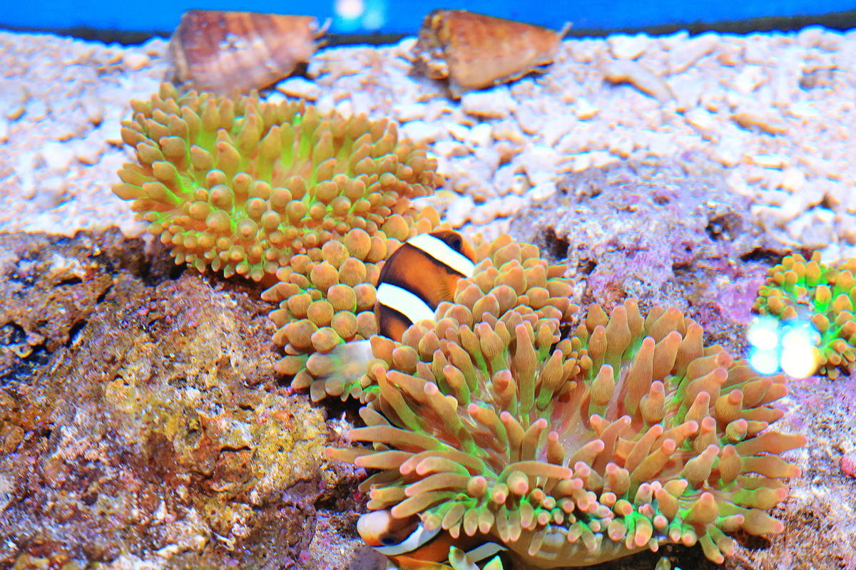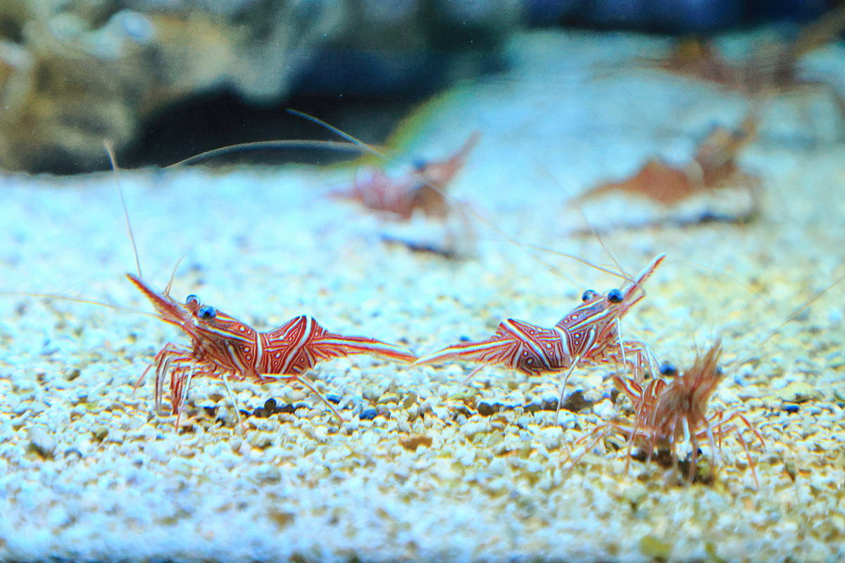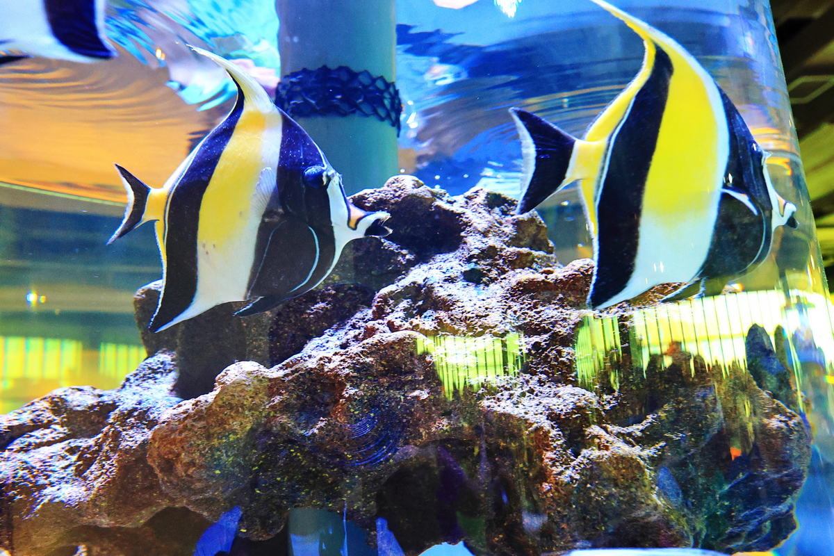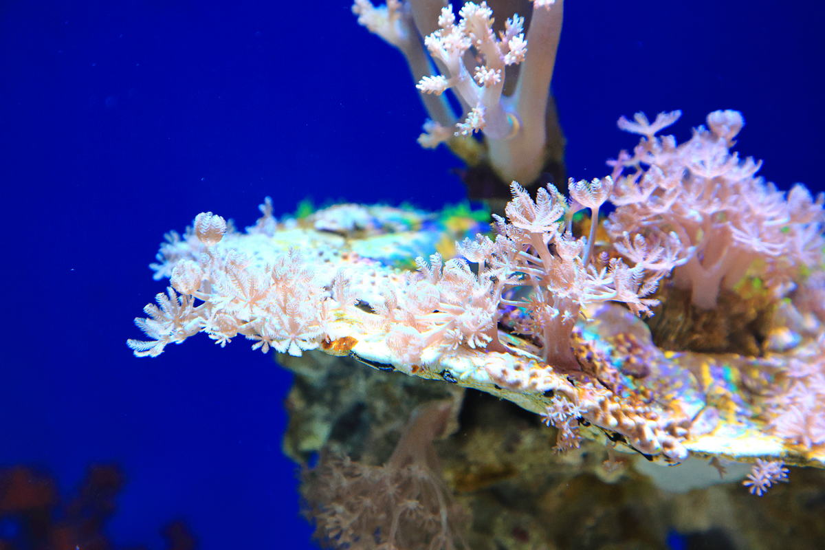 再往前走些進入【璀璨珊瑚區】,眼前一座座開放且堆疊成立體型態的珊瑚展示缸,透過像是進入藝廊欣賞藝術品燈光投射下,此時眼前各種珊瑚展示缸就像珠寶一樣散發著璀璨光芒,同時在細細品味這每一個像是珠寶盒中的絢麗珊瑚,還能發現與海葵共生的可愛小丑魚,或是色彩繽紛的網紋活額蝦、嘟著可愛小嘴的海馬們,於此愜意游動呢!