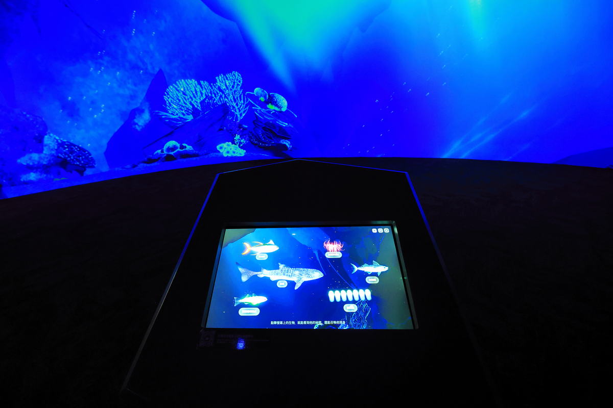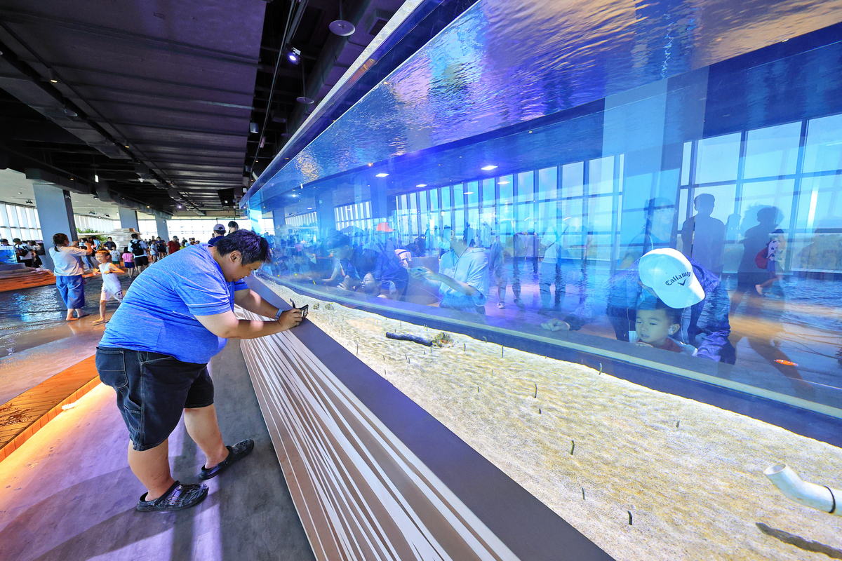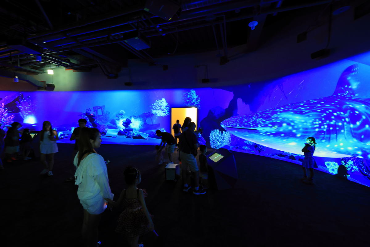 最後,我們隨著能與巨大鯨鯊等生物的全景互動投影,同時也能了解更多海洋生物知識的【海洋學園】互動牆一起打卡拍照,這一天在台中海洋館的漫遊也正式劃下句點,這次參觀台中海洋館由於在試營運的熱潮期間而有著絡繹不絕的遊客,一同在此感受台中海線最新穎的場館,而整座場館像是一座美術館的光影、展示空間設計規劃,對我來說,如此唯美的場館體驗還讓我想要在試營運之後的平日再來細細品味一番,想必那時候的再次造訪這座場館,能更為感受台中河川涓涓流水、人工溼地潮起潮落以及大海浪濤與這座空間共築的時尚聲光美學呢!