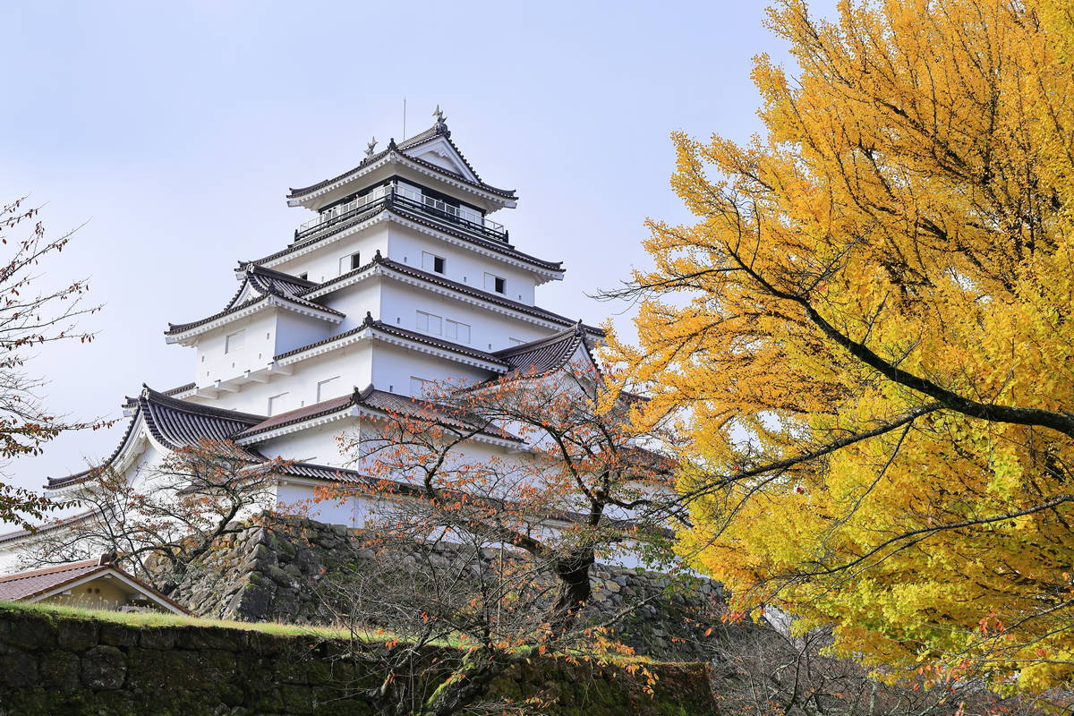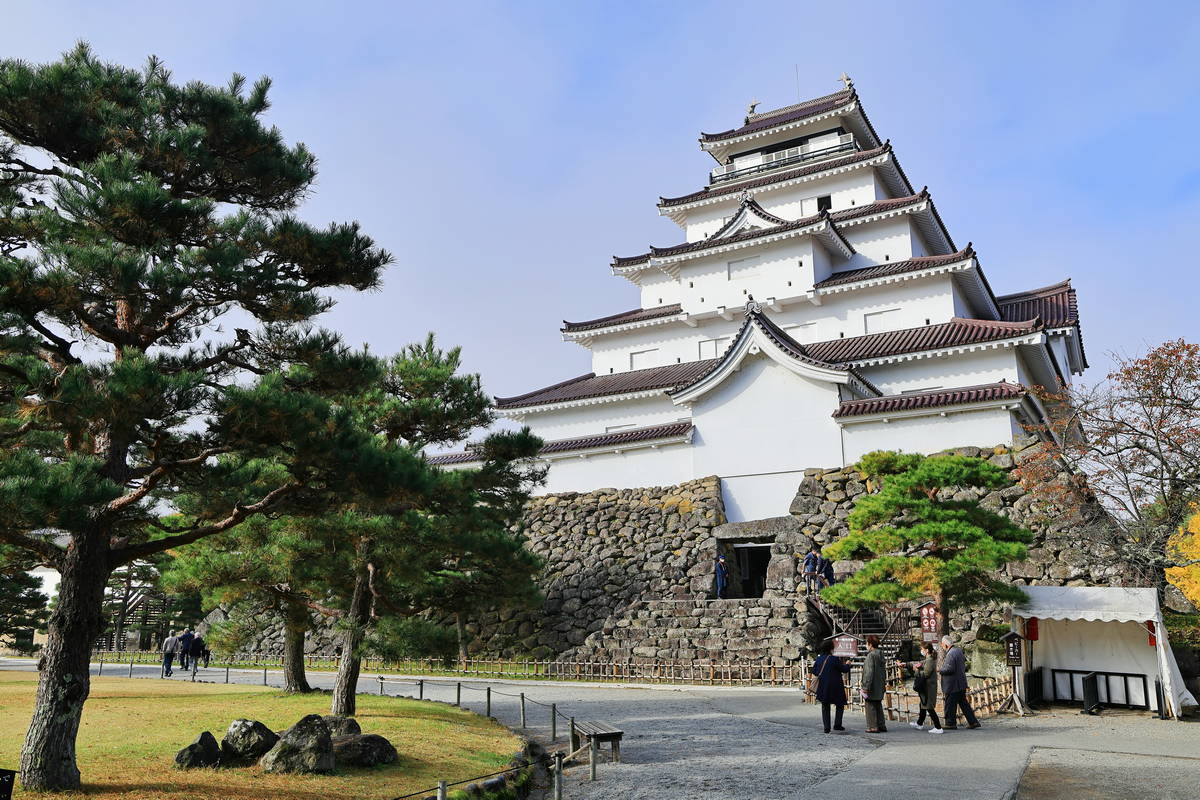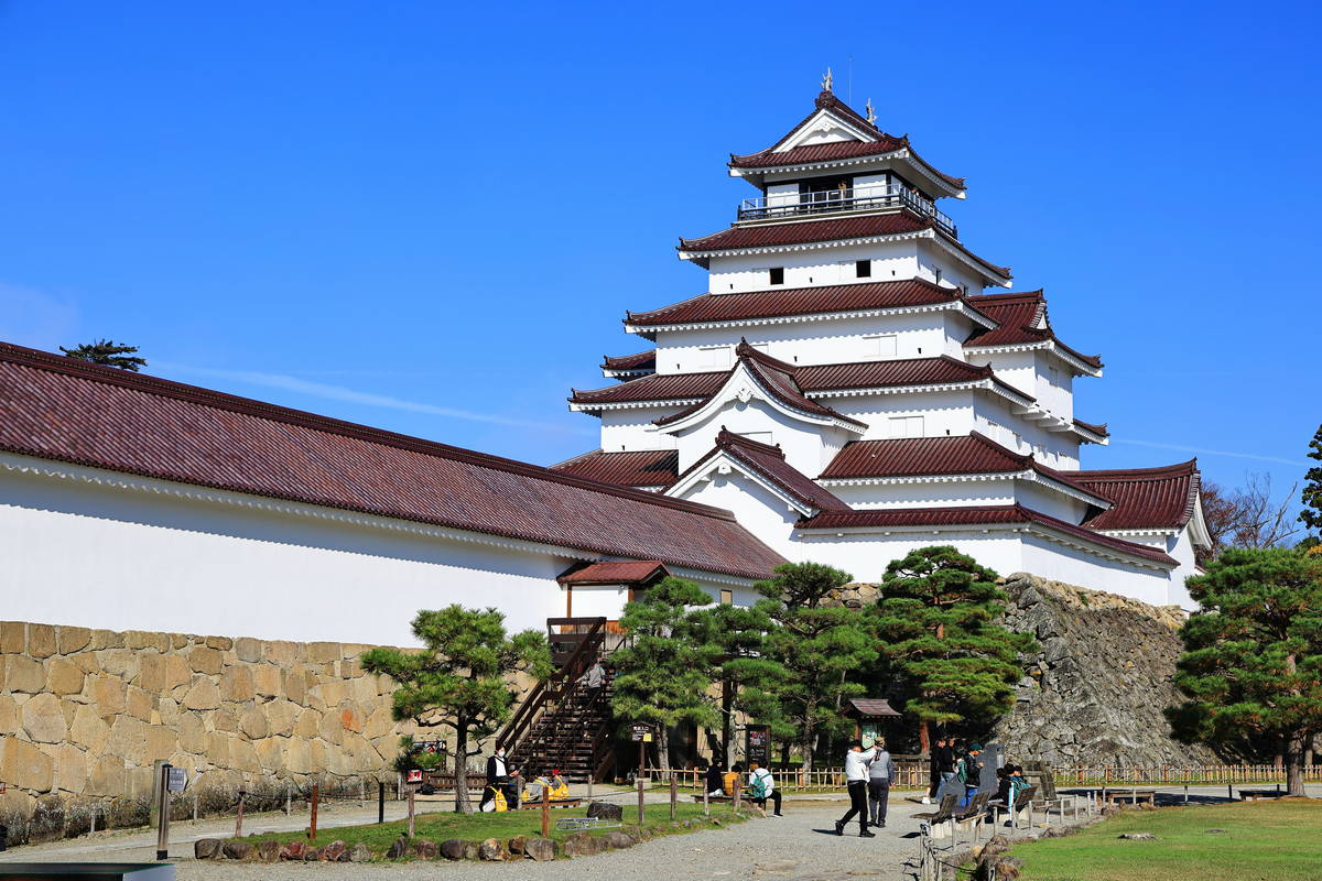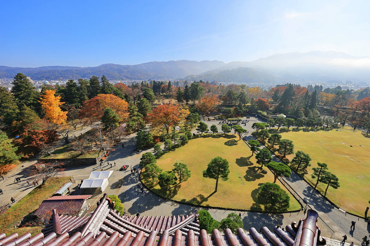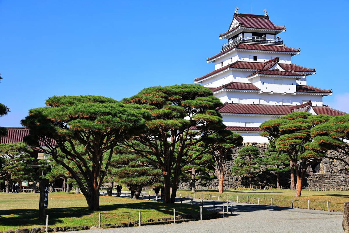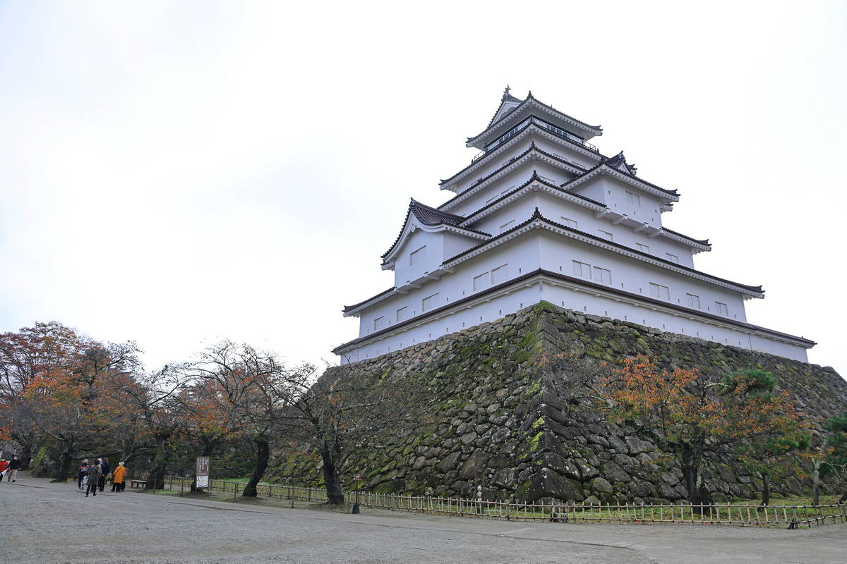 最後走出天守閣,透過在城池下遼闊的庭院,藉著翠綠的松樹、金黃的銀杏抑或是火紅的楓葉配襯著如白鶴羽毛一樣典雅的會津若松城,享受著承襲百年來日本獨特的簡約和式美學呢!