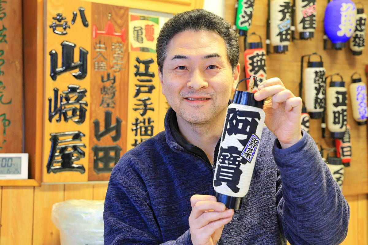 於是這次帶著白底提燈,再次造訪山崎屋 源七提灯店。