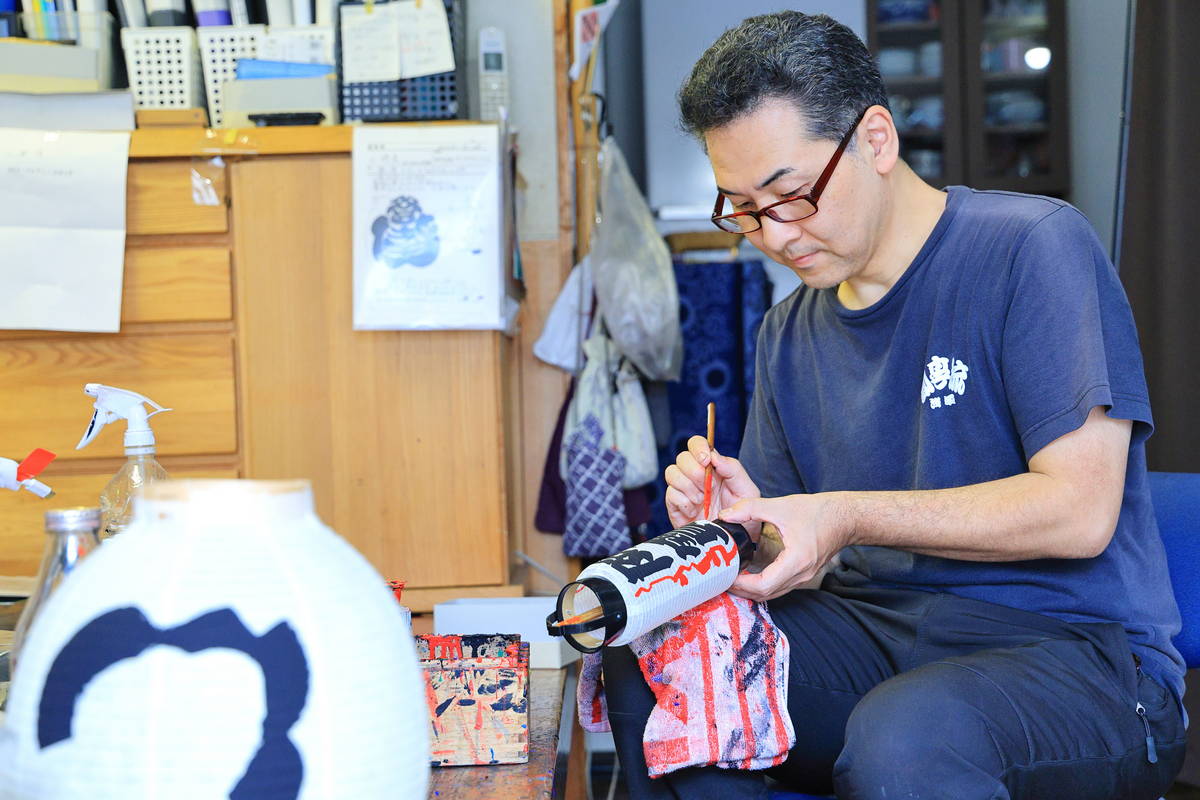 看著老闆一筆一筆將紅漆勾勒於相當容易破損的“和紙”提燈上,穩定滑順的繪製手感,欣賞這樣的職人技藝真的是種享受。