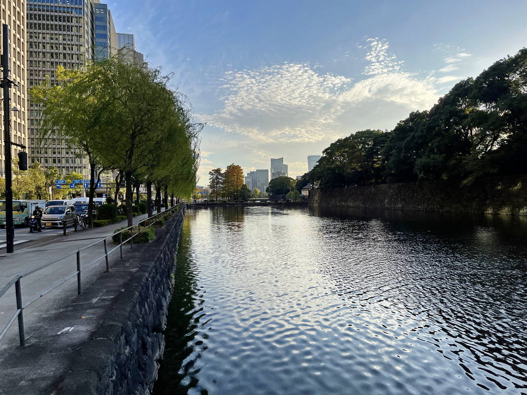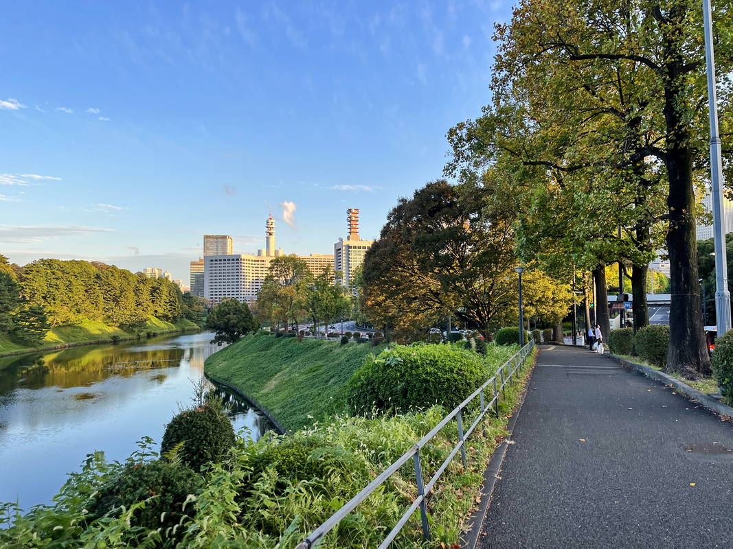 此時從代官通町側,左轉進入內崛通道路,沿著這條名為半藏濠護城河,想像昔日幕府時代若要攻克江戶城,要怎麼越過這寬且深的護城河,真的很困難呢。