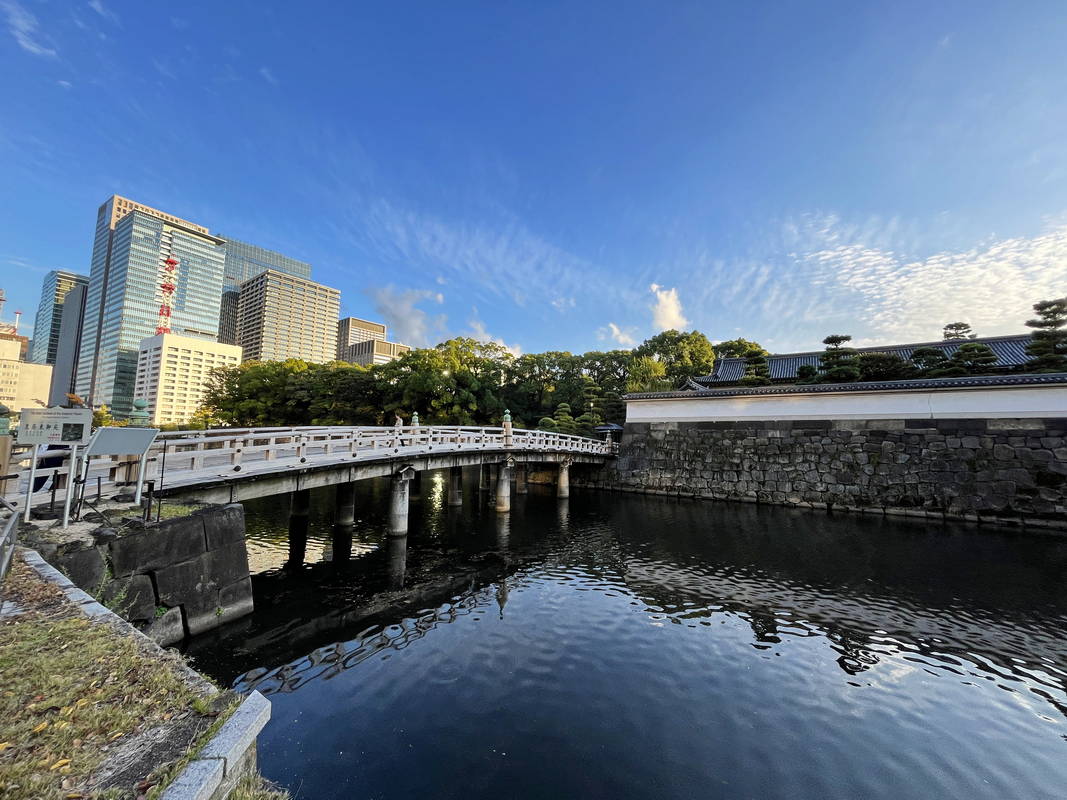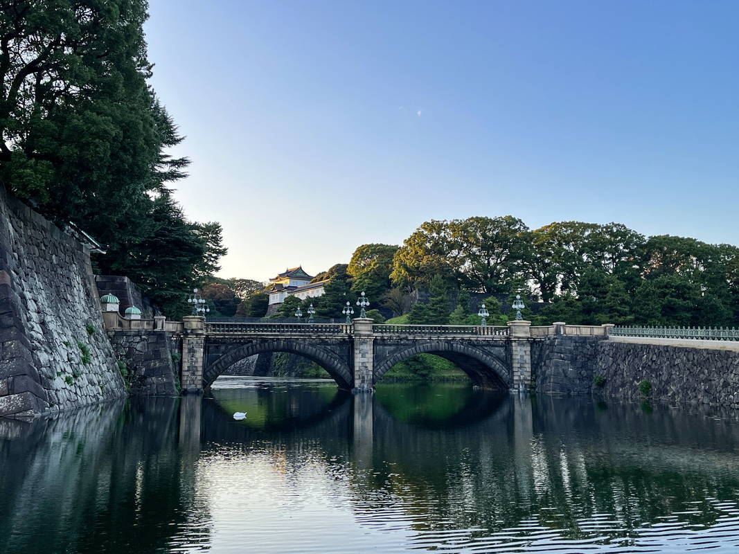 此處石橋即是通往天皇住所的二重橋,而隨著護城河倒影的映襯下,更有著眼鏡橋的美名。