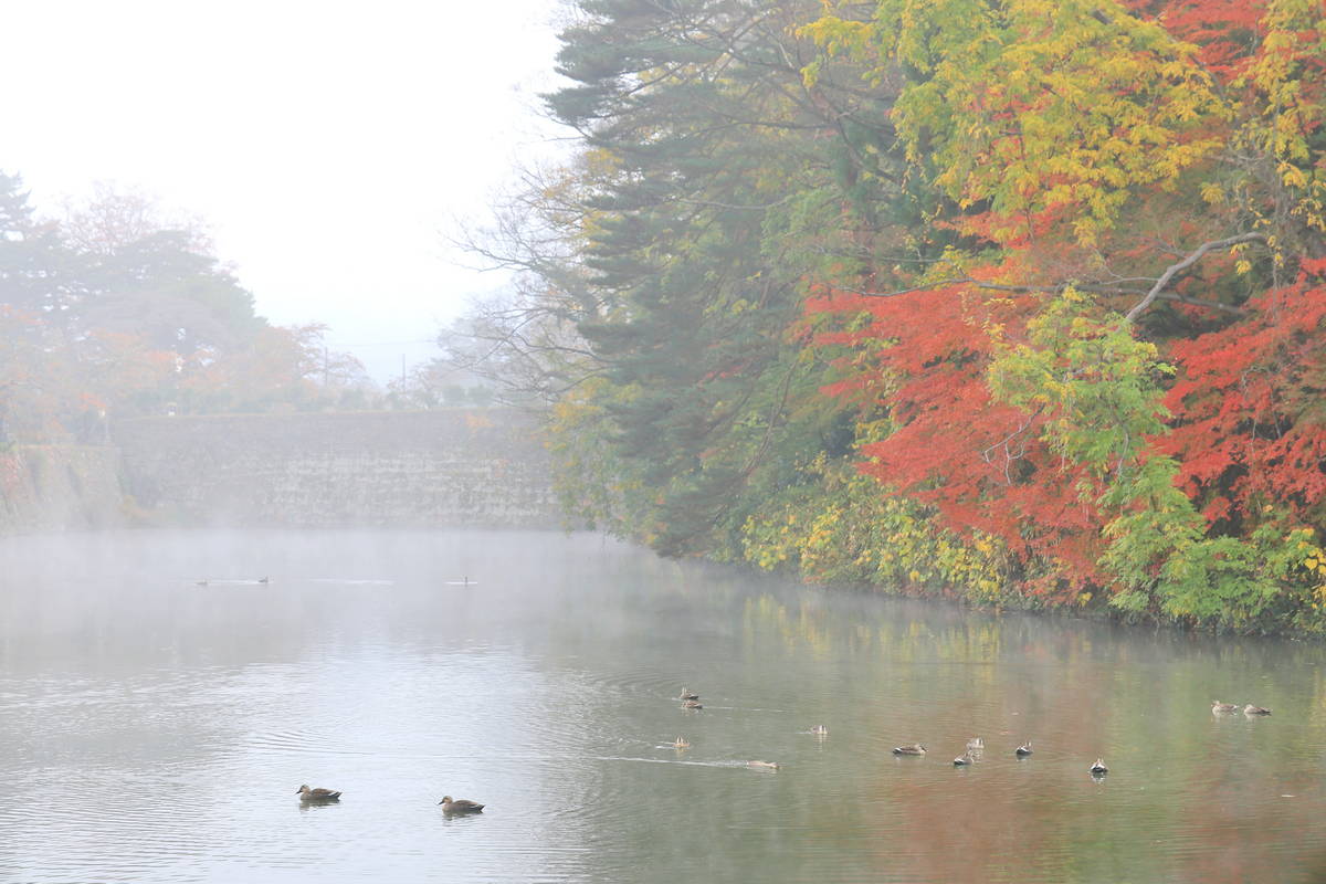 這一路上,除了遼闊的豬苗代湖之外,因磐梯山爆發形成的堰塞湖群,隨著季節、天氣與水質不同而有著不同水色而得名的【五色沼】,沿著岸邊的小徑漫步,或高或低穿梭樹林、倒木之間,欣賞著眼前金黃芒草與針葉林交織而成的湖水景色,頓時以為自己身處在歐洲鄉野之間的愜意,此外靠近湖水時,居然會有鯉魚靠近岸邊抬頭仰望著我,不怕人的模樣真是可愛,可惜這次沒有發現傳說中一身潔白著身形,卻有一顆紅艷愛心印記的鯉魚,據說親驗看到牠,可是相當幸福的一件事呢!最後緊鄰五色沼旁的【秋元湖】,更是欣賞秋天楓葉將山巒染滿金黃色調,卻沒有任何遊客造訪,因而在此可愜意獨享湖光山色的好去處呢。