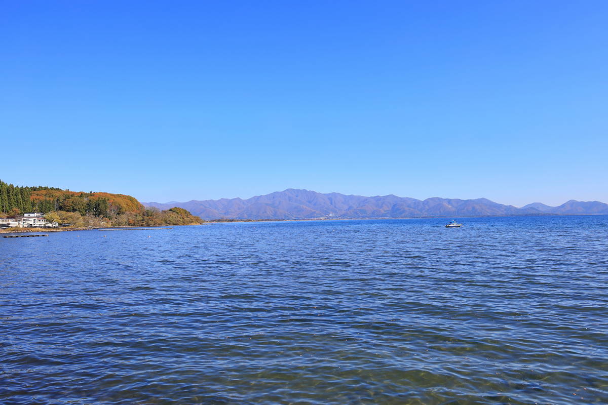 離開會津若松城,接著朝仙台前進,而隨著公路行經豬苗代湖時,眼前遼闊如海灣的景色,讓我停下腳步,想要慢慢欣賞這片美景。