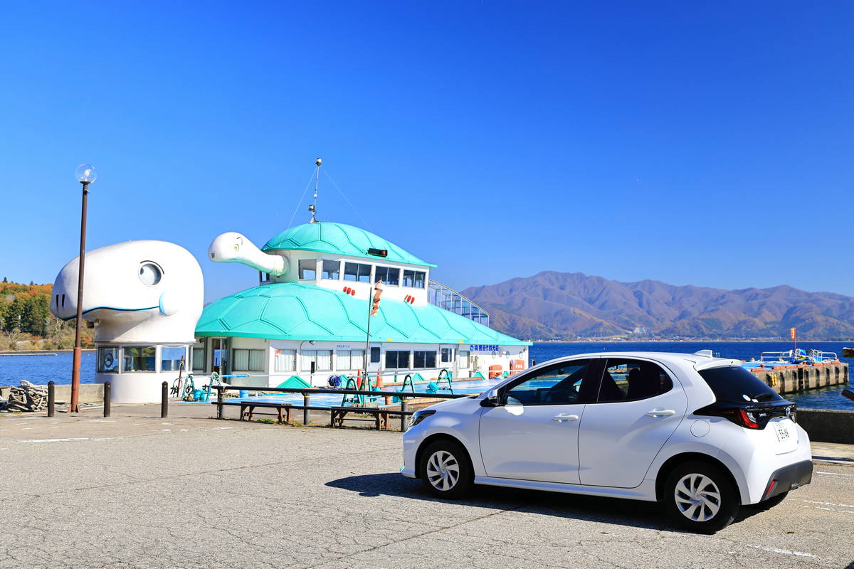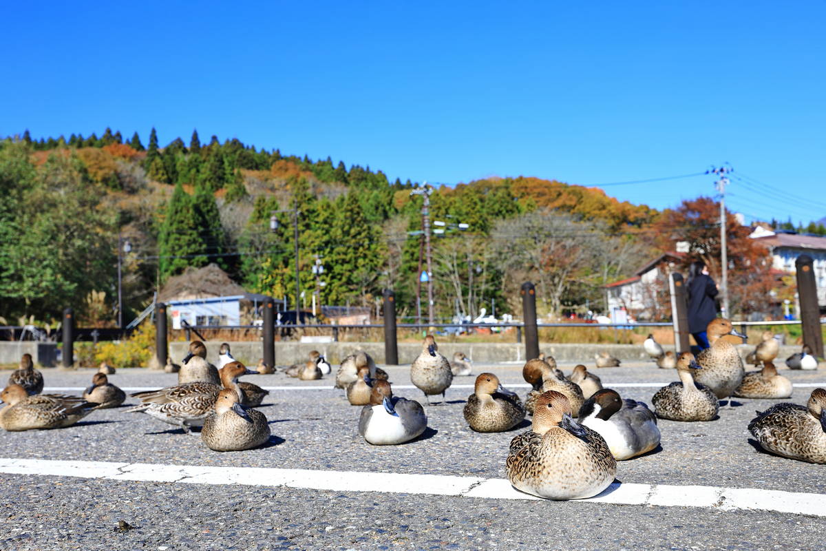 尋訪完會津若松城的昔日風華後,接著繼續朝向仙台前進,而就在出發沒多久,在公路上看到眼前一片像是海灣一般遼闊的【豬苗代湖】,讓我就此停車走向湖邊欣賞這片風景,此時秋高氣爽的季節中,豬苗代湖不僅在陽光的照耀下,有著相當清爽透澈的水色,同時湖面對岸的山嵐也染上秋天金黃的色調,讓我有著心曠神怡的視覺感,同時搭配著豬苗代湖觀光船逗趣的天鵝、烏龜造型,於湖面上行駛,更是相當可愛逗趣的特色呢,而且在岸邊愜意曬著陽光的雁鴨,也呼應著這些觀光船,為秀麗的豬苗代湖增添許多童趣的感受。