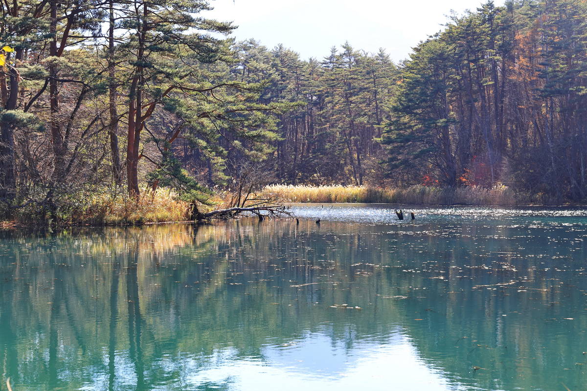 雖然是磐梯山噴發而形成的堰塞湖,且水中滿是倒木與落葉,但水色相當乾淨清澈不混濁。