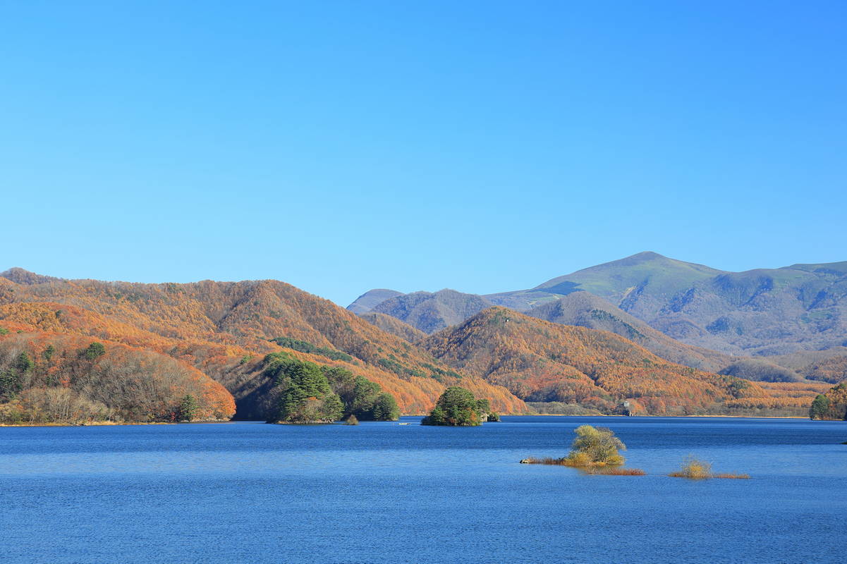 除了五色沼之外,一旁的秋元湖盡覽秋天的湖光山色,也是相當愜意的好去處。