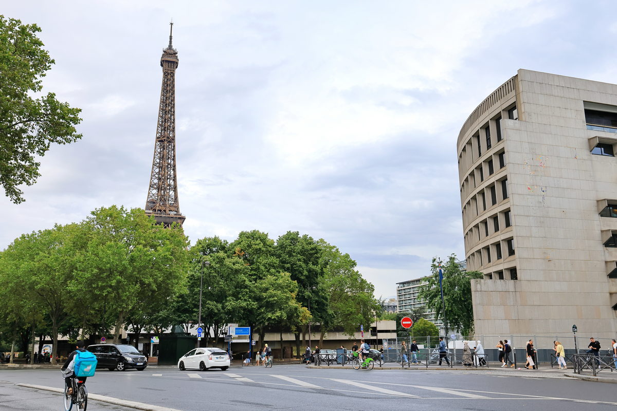 走出地鐵站,眼前即是高聳的艾菲爾鐵塔。