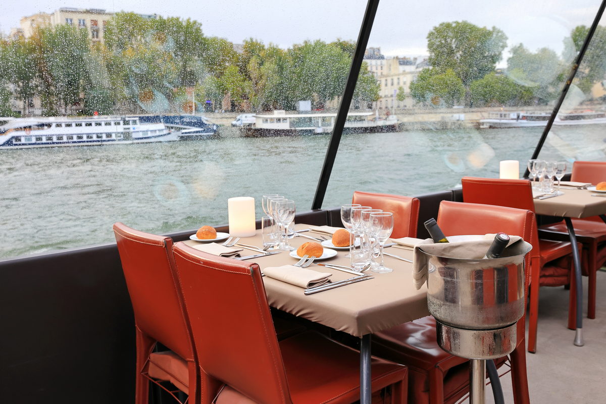 坐在船邊用餐,透過透亮的玻璃頂欣賞窗外塞納河景致,實在愜意享受啊。