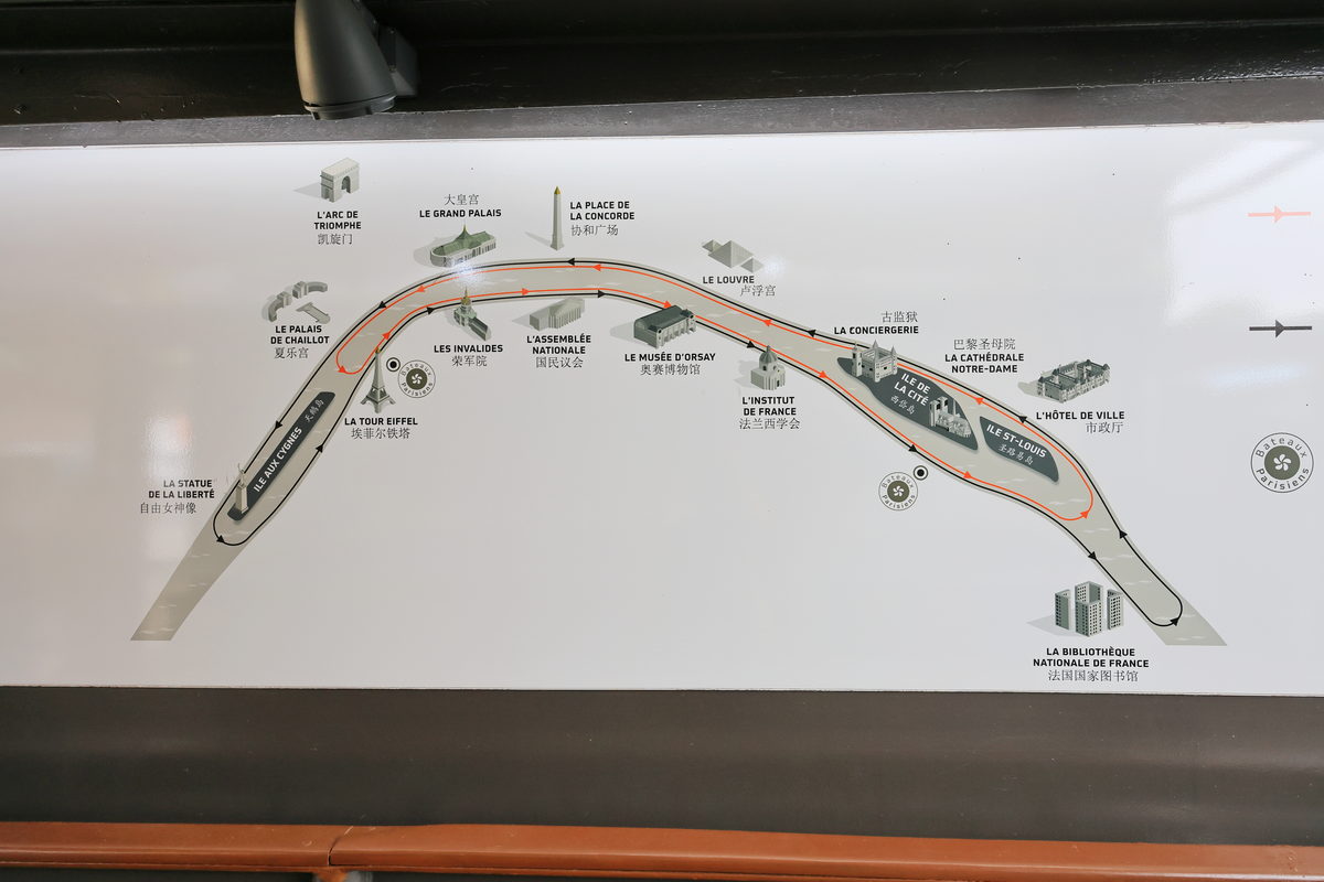 這次的於塞納河上晚餐航行路線為黑色標線。