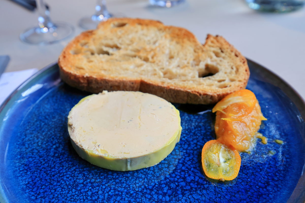 另一道前菜也是相當知名的法國鴨肝醬,搭配麵包與金桔及杏子酸辣醬,更是香滑絲綿,相當順口。