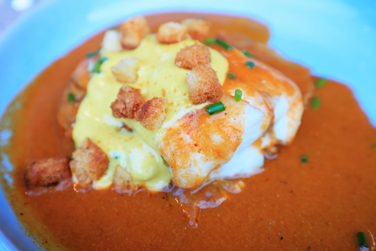 主菜:煎海鱸魚,佐馬賽魚湯、馬鈴薯泥。