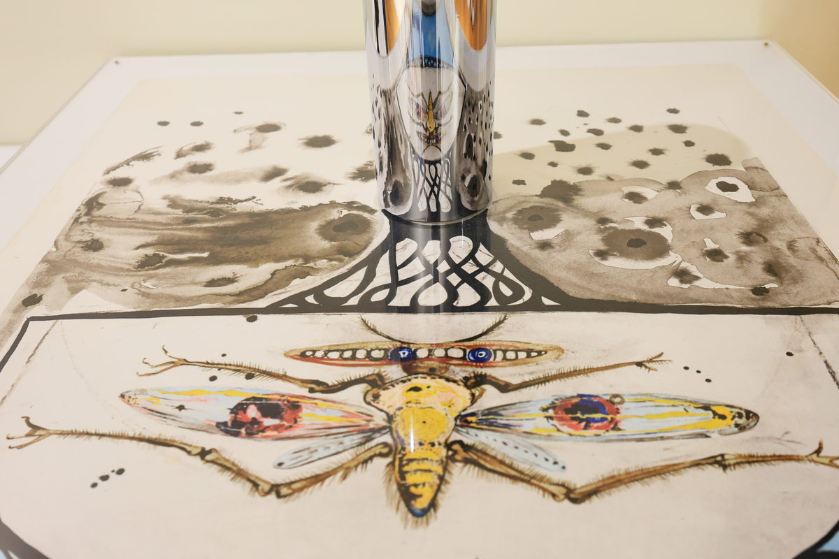 透過拋光的不鏽鋼管倒映後,變成充滿邪氣的臉譜,又好似達利本人怪異的表情,相當有趣。