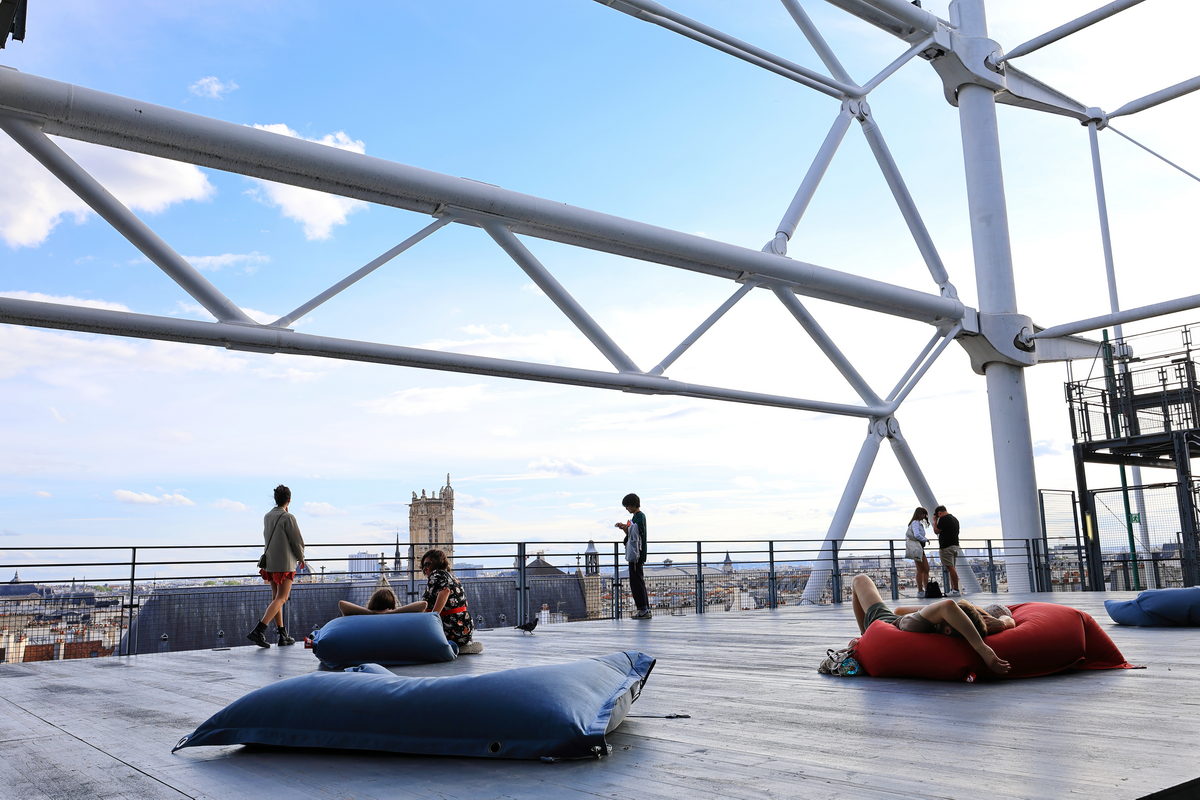 樓頂能在此躺著藝術家創作的懶骨頭沙發,享受著徐徐微風欣賞著巴黎市景。