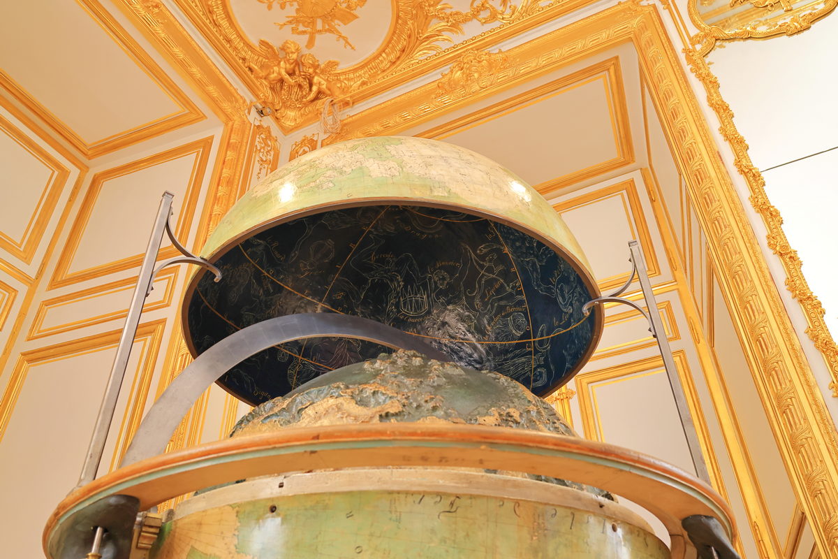 蹲下來抬頭觀察球頂內部,還能看到天體星空的配置,太驚人了。
