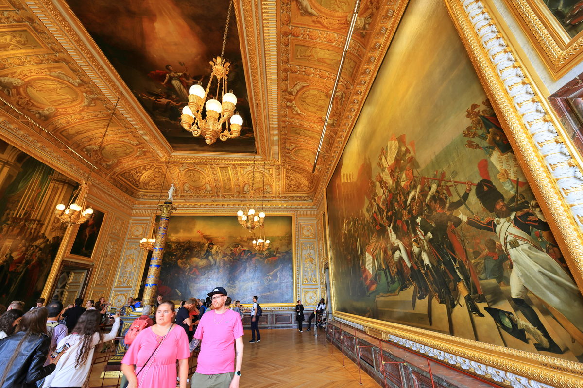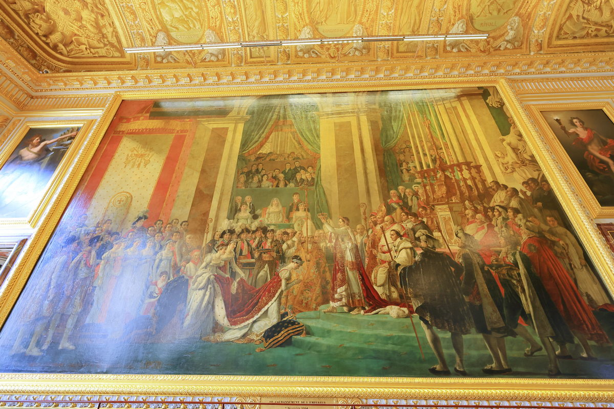 在凡爾賽宮,也有一幅拿破崙加冕的作品,對比羅浮宮的版本,看出兩幅的差異了嗎?