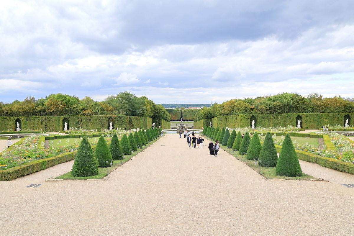 逛完華麗的凡爾賽宮後,走向花園欣賞這極為對稱且寬闊的庭院。