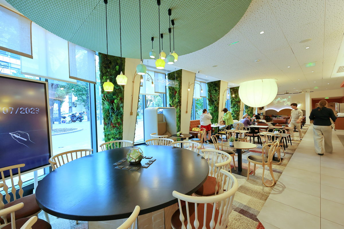 大廳內的休憩、用餐空間相當時尚、簡約。