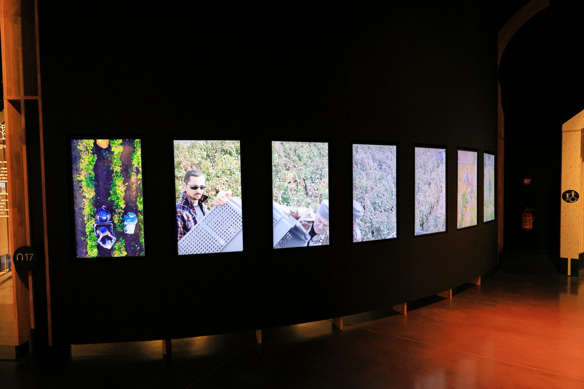 而在博物館訴說著勃根地種植葡萄釀酒的歷史軌跡之外,還有著許多互動式影片讓旅人能隨著動畫了解現代化的葡萄酒製程、採收葡萄時所用的器具與儲存葡萄汁液等待它隨著時間發酵轉化為佳釀的傳統橡木桶、不鏽鋼桶,以及酒標細節資訊的教學之外,在展覽空間的尾聲,則是放置著新鮮柑橘、咖啡、巧克力、莓果等聞香罐,讓我平時看著品酒人分享著酒類試飲時,其散發著相當抽象的味道頓時能讓自己的嗅覺藉著這些聞香罐有著強烈的記憶點,最後再走向吧檯,細細品味試飲這已蓋上瓶身標示的紅酒,尋找如同聞香罐中相同的氣息,以及在味蕾之間繚繞的豐富感,做為參觀博物館展覽空間中最有趣的結束呢。