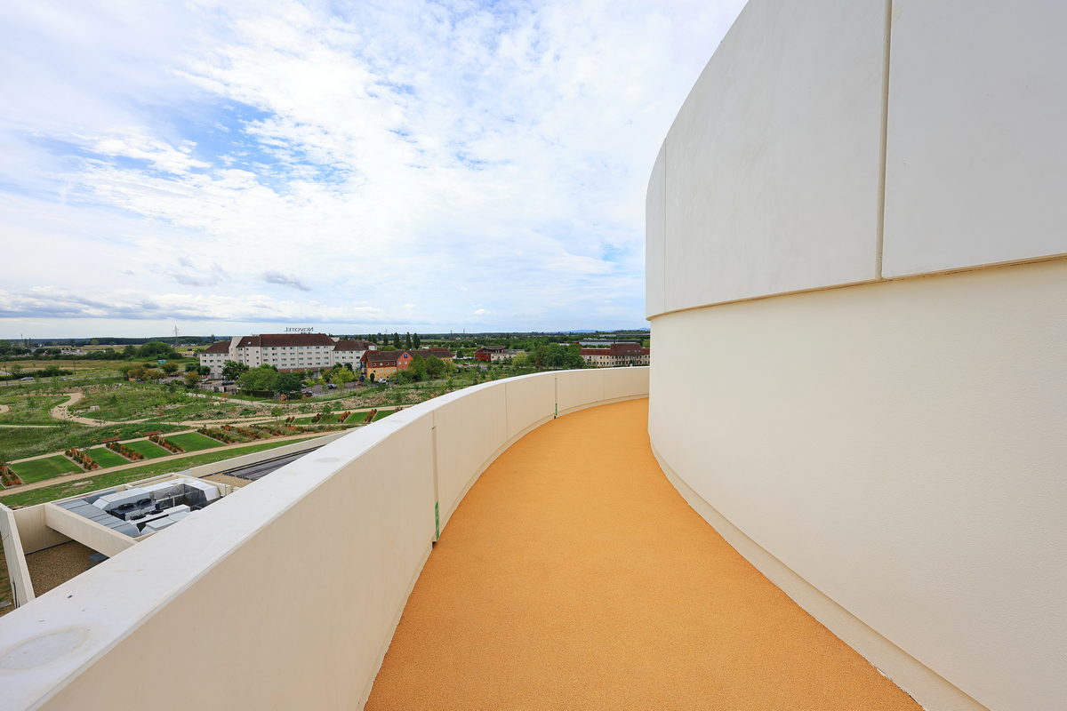 參觀完1樓的展覽空間後,接著我們搭乘電梯前往5樓的展望台,在這頂樓的制高點,眺望環繞著博訥(Beaune)市區周圍的朋丘這座丘陵地形,而山坡上種滿著翠綠的葡萄樹農田景致,更讓我對於接下來的勃根地酒莊探訪巡禮有著深深的期待呢,除此之外,剛開幕不久的博物館,也於3樓處種植著小面積的葡萄園,再過個幾年,等待葡萄樹茁壯且結滿果實後,我想博物館更能帶著造訪的遊客感受手摘葡萄進而釀製自己的葡萄酒,這段充滿手作溫度的在地體驗呢。